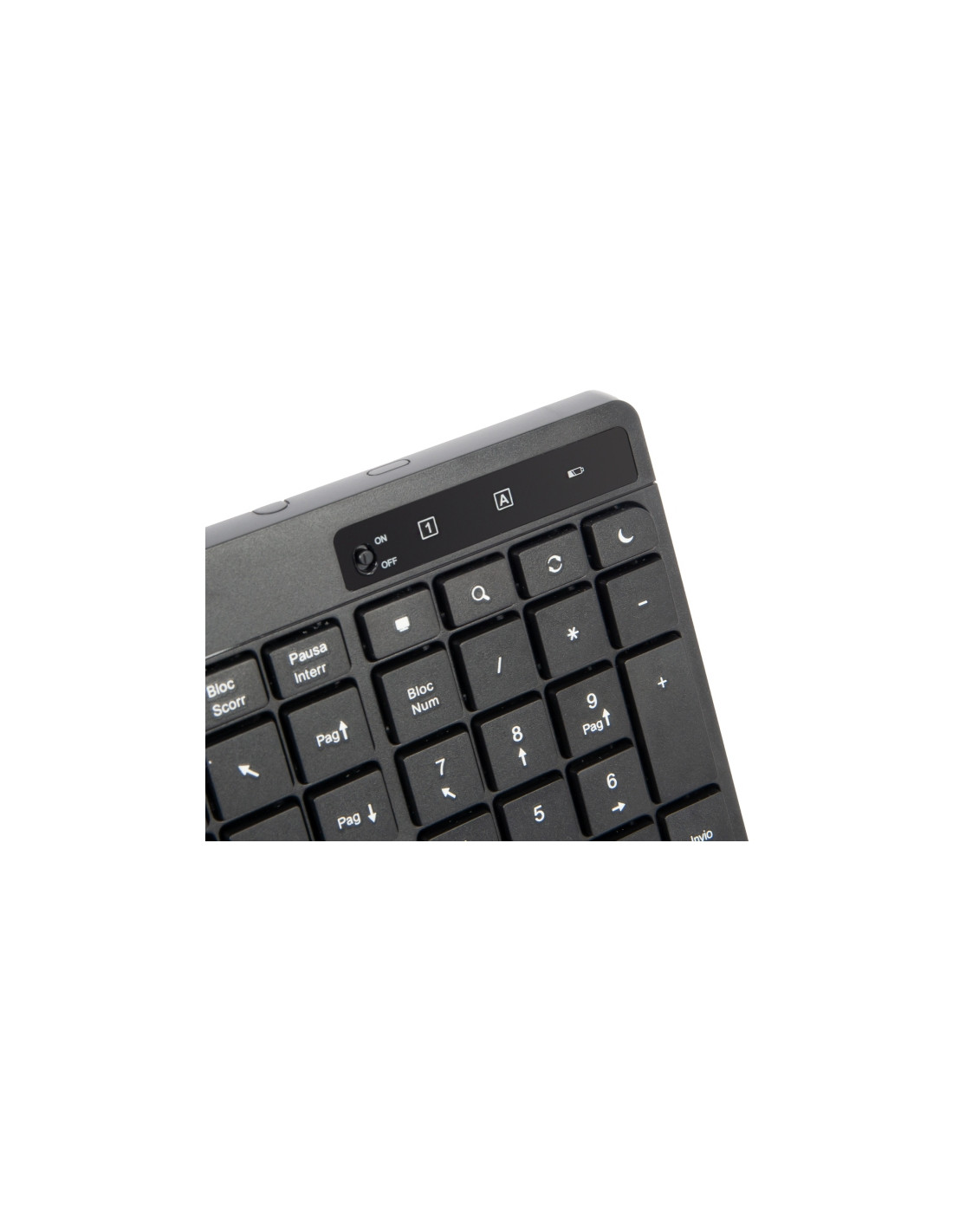 Risparmio energetico grazie al tasto di accensione e spegnimento per attivarla solo quando viene utilizzata. Gli indicatori LED, invece, comunicano inserimento blocco numerico, scrittura in formato maiuscolo e il livello della batteria.