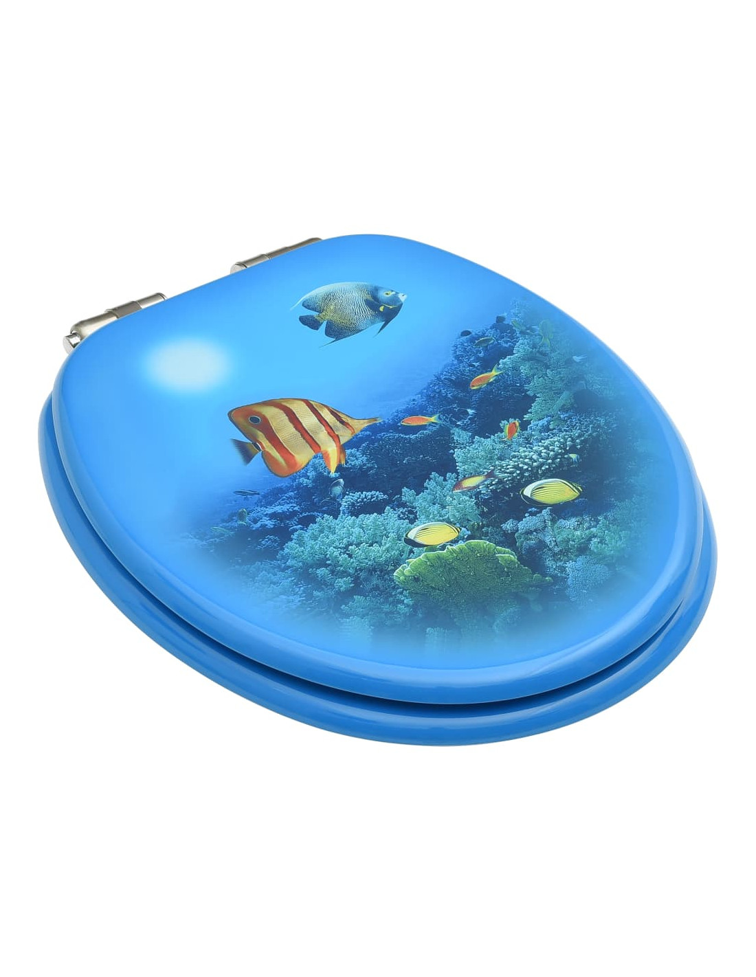 Il coperchio e il sedile in MDF sono estremamente robusti e resistenti. Le cerniere sono in lega di zinco-cromo extra robusti. Questo copriwater ha una funzione di chiusura morbida, il che significa che si chiude lentamente e silenziosamente.