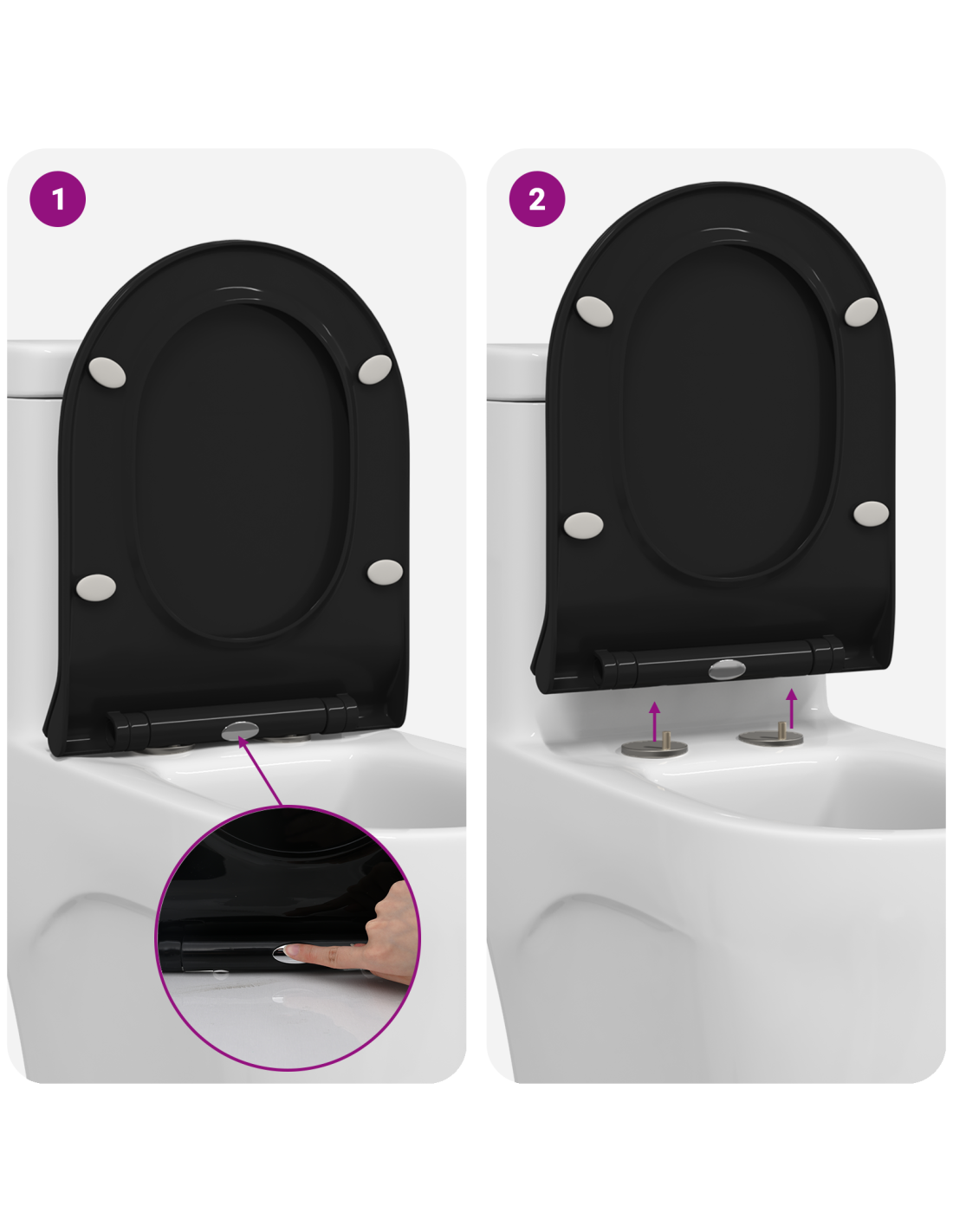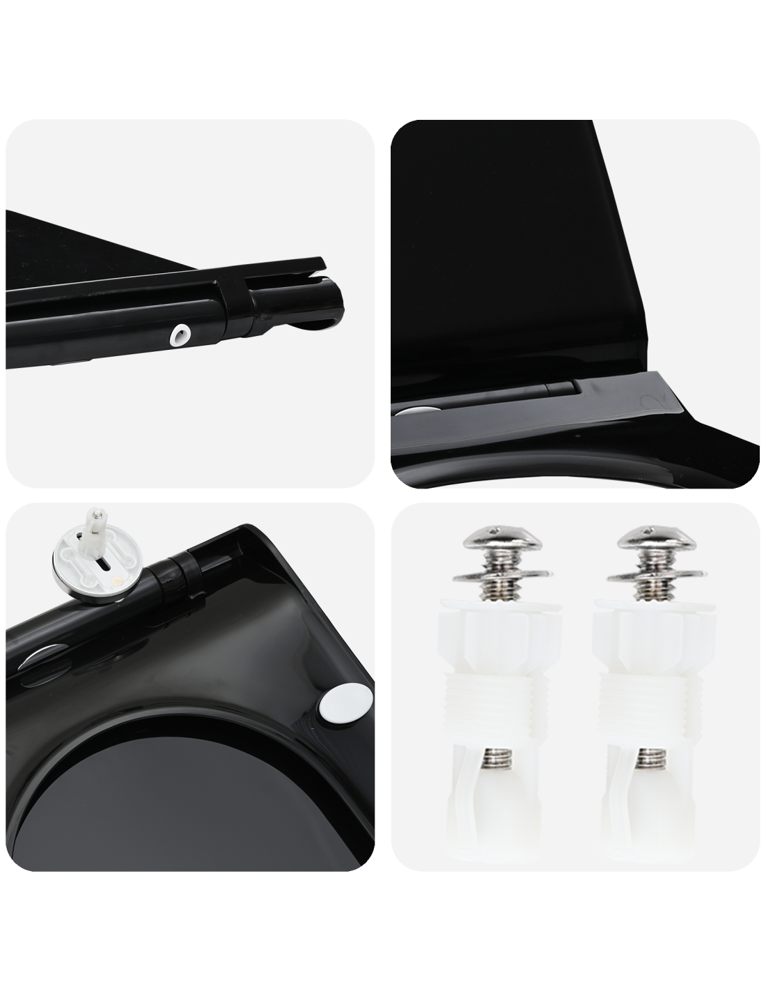 - Cerniere in acciaio inox Grazie a cerniere resistenti, questo sedile offre una connessione stabile, impedendo l'ossidazione anche nei bagni umidi. Questi particolari aumentano la durata del prodotto mantenendolo in ottima forma.
