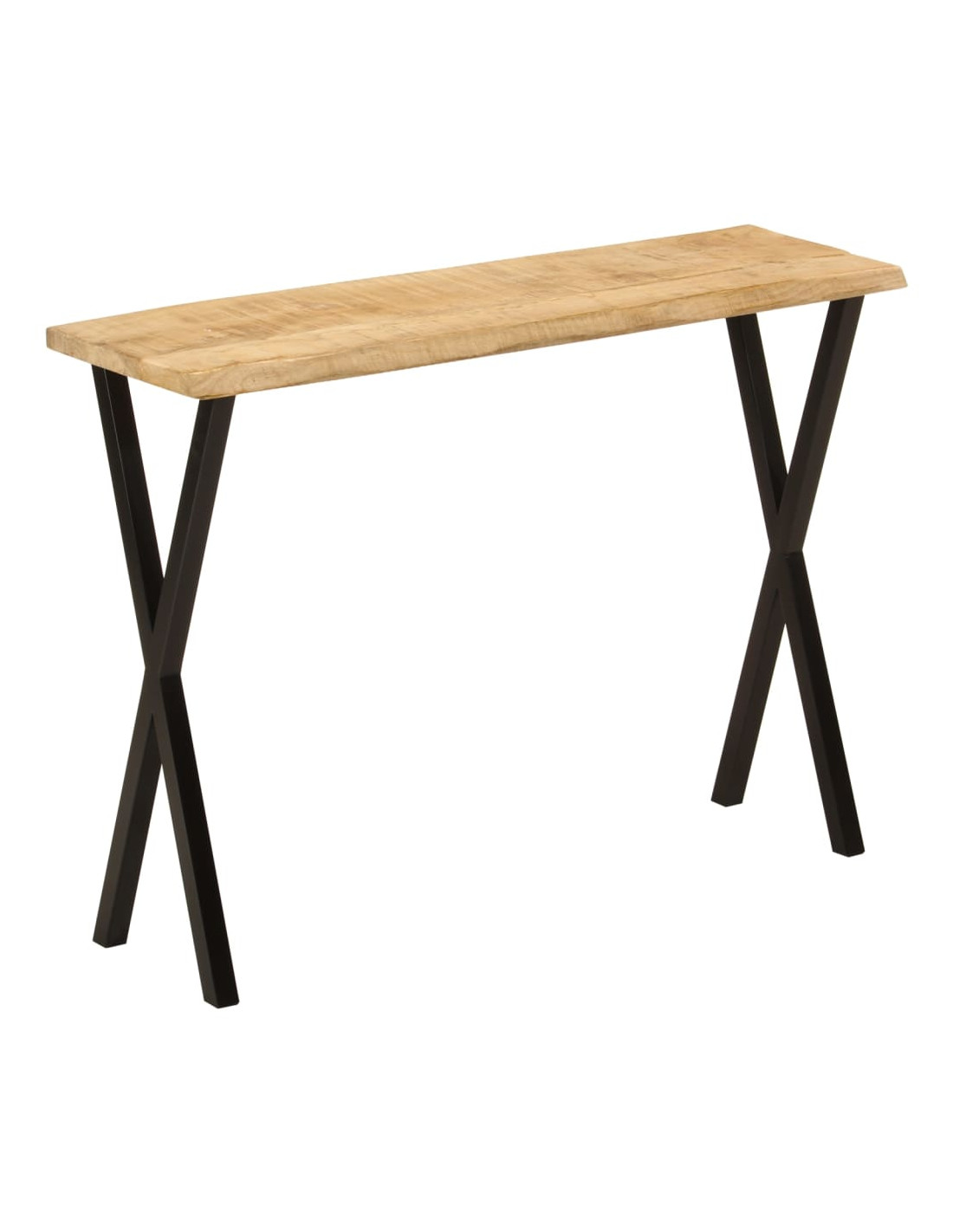 Questo tavolo consolle, con un piano in legno massello di mango e le gambe stabili a forma di X, è un ottimo complemento al vostro soggiorno o ingresso.