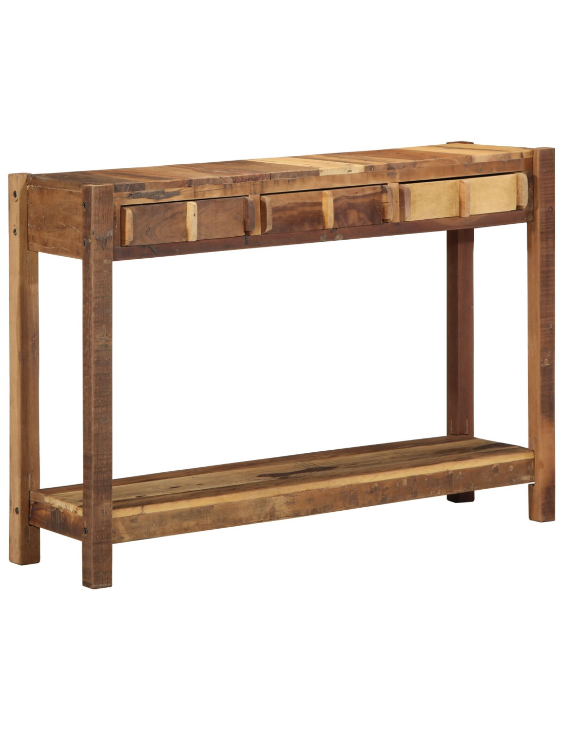 Questo console table rustico è un mix perfetto di eleganza e fascino naturale, progettato per completare i tuoi spazi interni. Il legno massello di recupero emana calore, arricchendo la tua stanza con la sua tonalità marrone e la texture unica. Con misure di 107 x 33 x 76 cm, è un'aggiunta multifunzionale perfetta per spazi piccoli o corridoi ampi. Con il suo aspetto naturale e il tono caldo, questo console table offre un look accogliente, attirando l'attenzione sulle sue capacità di stoccaggio, sia in una camera da letto che in un ingresso invitante.