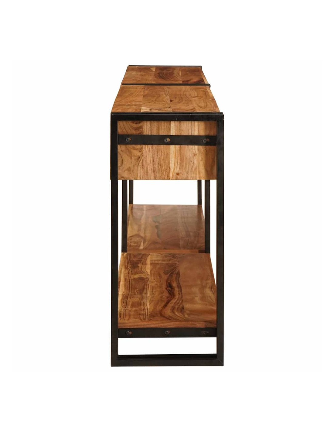 Questo Consolle Rustic elegante incarna la bellezza naturale e il fascino, unendo stile e funzionalità. Perfetto per aggiungere un tocco rustico, è l'ideale per qualsiasi soggiorno grazie al suo design rettangolare versatile. La sua finitura in legno crea un'atmosfera accogliente, si sposa bene con ambienti moderni e tradizionali. Come elemento centrale o come complemento, questo tavolo consolle dà vita a un ambiente invitante in ogni casa.