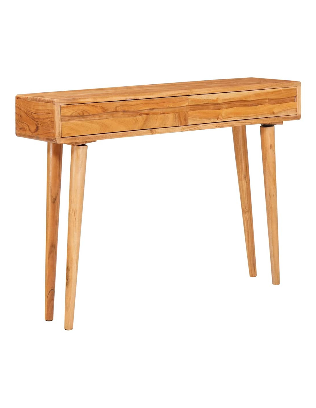 - Materiali: Questo tavolo consolle è realizzato in legno massello di acacia di alta qualità, noto per la sua resistenza e bellezza. La sua resistenza all'abrasione permette un uso duraturo, mantenendo il suo fascino. La calda tonalità marrone aggiunge un tocco ricco, mentre la superficie liscia è piacevole al tatto.