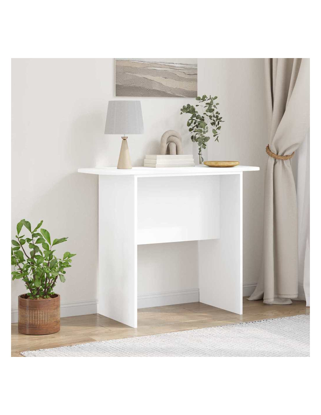 Questo Tavolo Consolle Moderno è un pezzo pratico e di stile che si adatta perfettamente a qualsiasi soggiorno. Il design rettangolare e semplice riflette la bellezza e il minimalismo dello stile moderno, rendendolo adatto a vari ambienti. Realizzato per interni, questo tavolo crea un senso di ordine e funziona bene. La struttura in legno ingegnerizzato assicura resistenza e stabilità, mantenendo un aspetto elegante, ideale per chi desidera migliorare lo stile della propria casa. Versatile, il tavolo crea un'atmosfera accogliente, può fungere da punto focale minimalista o soddisfare necessità pratiche, sia come parte dell'arredamento che da solo.