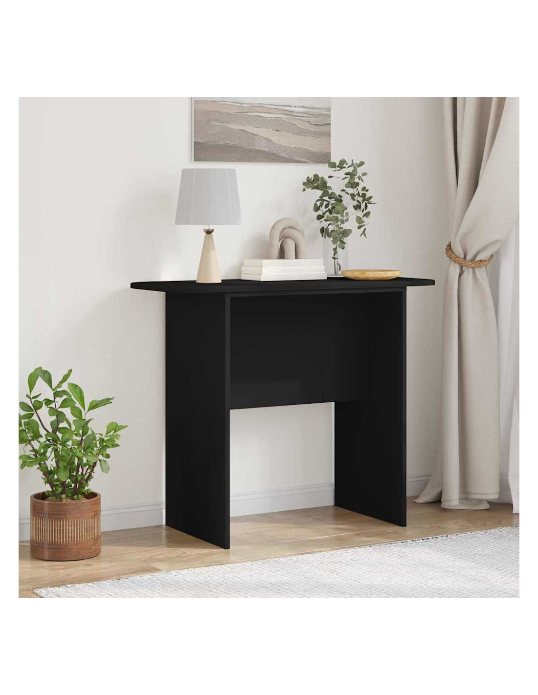 Questo Tavolo Consolle Moderno è un pezzo pratico e di stile che si adatta perfettamente a qualsiasi soggiorno. Il design rettangolare e semplice riflette la bellezza e il minimalismo dello stile moderno, rendendolo adatto a vari ambienti. Realizzato per interni, questo tavolo crea un senso di ordine e funziona bene. La struttura in legno ingegnerizzato assicura resistenza e stabilità, mantenendo un aspetto elegante, ideale per chi desidera migliorare lo stile della propria casa. Versatile, il tavolo crea un'atmosfera accogliente, può fungere da punto focale minimalista o soddisfare necessità pratiche, sia come parte dell'arredamento che da solo.