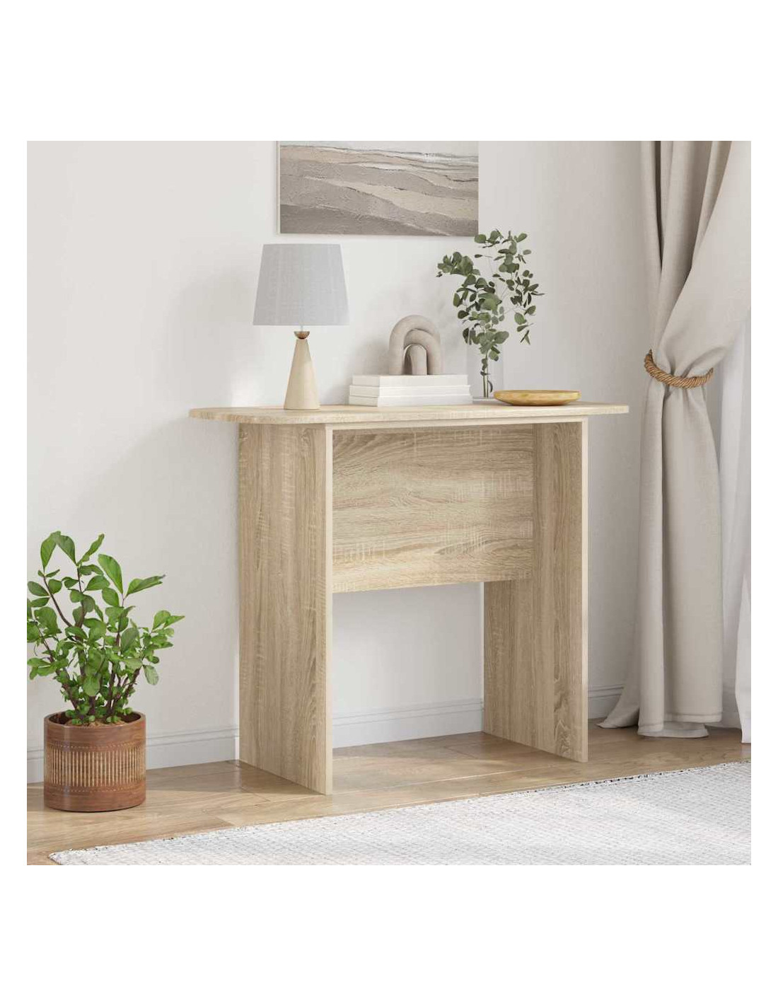 Questo Tavolo Consolle Moderno è un pezzo pratico e di stile che si adatta perfettamente a qualsiasi soggiorno. Il design rettangolare e semplice riflette la bellezza e il minimalismo dello stile moderno, rendendolo adatto a vari ambienti. Realizzato per interni, questo tavolo crea un senso di ordine e funziona bene. La struttura in legno ingegnerizzato assicura resistenza e stabilità, mantenendo un aspetto elegante, ideale per chi desidera migliorare lo stile della propria casa. Versatile, il tavolo crea un'atmosfera accogliente, può fungere da punto focale minimalista o soddisfare necessità pratiche, sia come parte dell'arredamento che da solo.