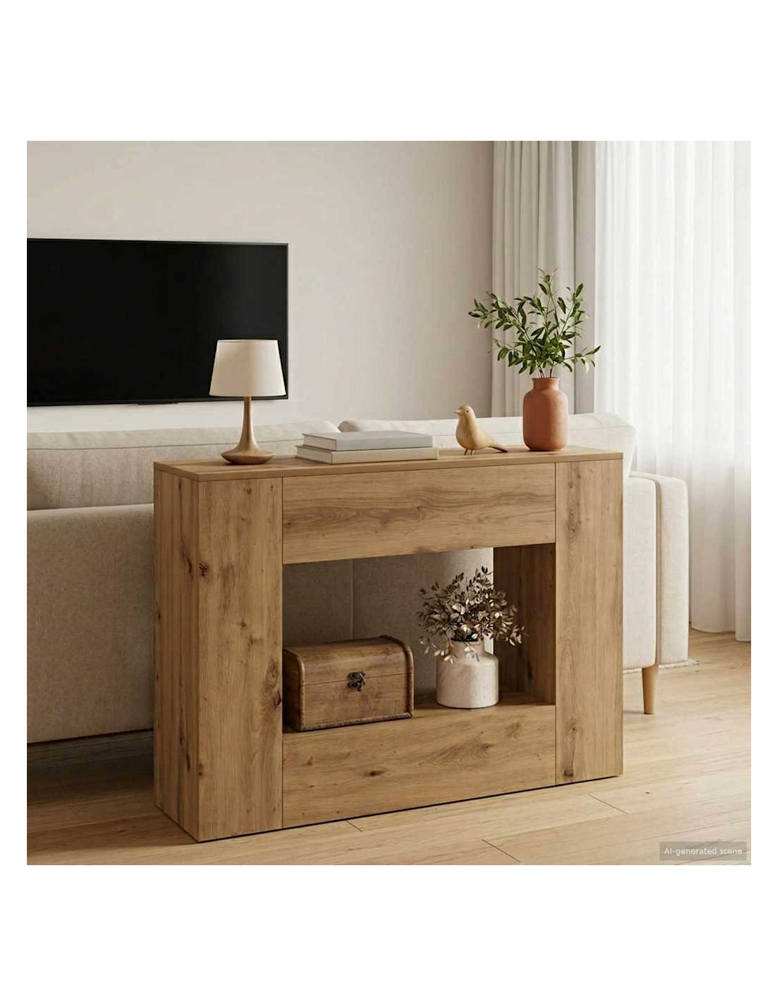 Questo tavolo da console è un epitome di eleganza e funzionalità, pensato per chi ama il design classico nei propri spazi. La sua linea elegante e l'uso intelligente dello spazio lo rendono perfetto per ingressi e soggiorni, offrendo una base pratica per esposizioni e soluzioni di archiviazione. Materiali: Questo tavolo da console è realizzato con materiali di qualità, garantendo un tocco premium e una buona durata. Resistente all'uso quotidiano, è un investimento sicuro per ogni casa, e le sue superfici si adattano a qualsiasi stile d'arredo, aggiungendo un tocco di classe ovunque venga collocato. Componenti Inclusi: Con ripiani spaziosi e scomparti, questo tavolo offre un modo intelligente per tenere in ordine gli oggetti essenziali. I suoi cassetti e scaffali aperti aiutano a ridurre il disordine, senza sacrificare lo stile degli spazi. Caratteristiche / Funzione / Design: Non è solo un mobile, le sue funzioni regolabili lo rendono adattabile a vari bisogni. Perfetto per riporre e mostrare libri, decorazioni o elettronica, il design assicura che sia pratico e stiloso. Questo mix di estetica e funzionalità è l'ideale per chi cerca eleganza e praticità. Usi Raccomandati: Perfetto per case che vogliono mantenere l'ordine con stile, questo tavolo da console si integra bene in ingressi, living o anche in uffici domestici. La sua versatilità lo rende utile sia come pezzo decorativo che come soluzione di archiviazione, un must-have per la vita moderna. Manutenzione & Cura: Basta una leggera spolverata con un panno asciutto per mantenere il tavolo pulito. Per preservarne la finitura, evita detergenti aggressivi. Con poche cure, rimane un dettaglio elegante nella tua decorazione domestica.
