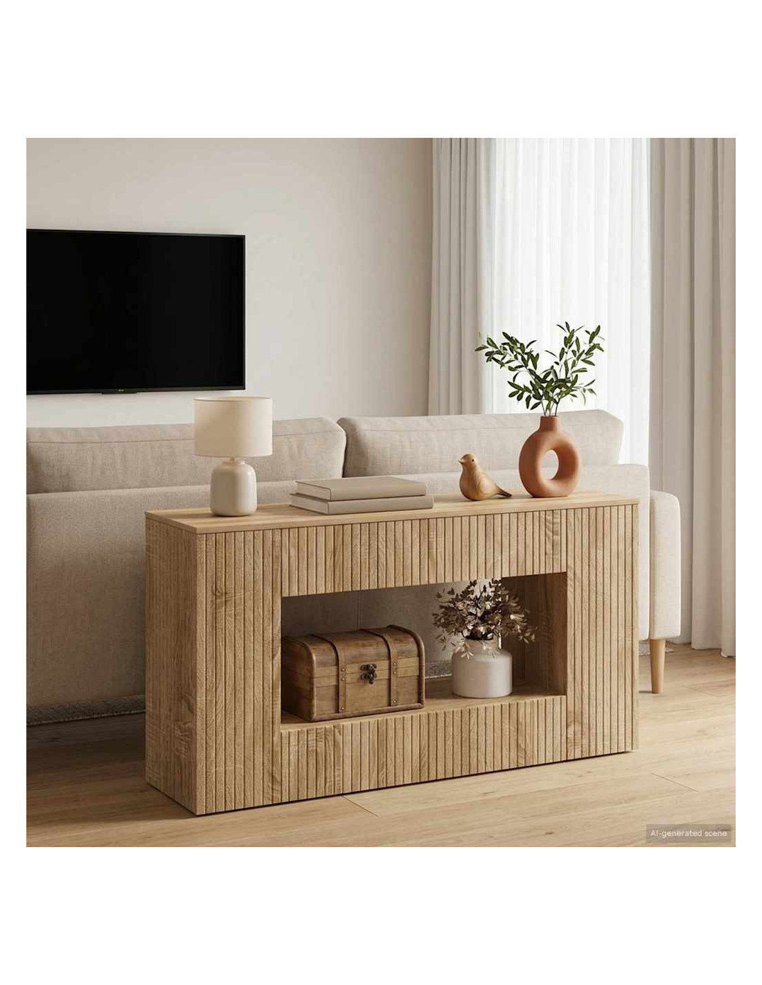 Questo tavolo console unisce stile e funzionalità, facendolo diventare un'aggiunta perfetta a qualsiasi casa. Con un design semplice e moderno si adatta facilmente a qualsiasi stile d'interni, da quello contemporaneo a quello transizionale. Grazie alle varie opzioni di stoccaggio, è versatile e ideale per corridoi, soggiorni o uffici. È progettato per essere utile e bello, fornendo comodità grazie alle sue caratteristiche pratiche e migliorando l'aspetto del tuo spazio. Materiali di alta qualità: Fatto in legno ingegnerizzato resistente, questo tavolo console ha una tonalità calda che si adatta bene a tanti stili di arredamento. La solidità garantisce durata, rendendolo un pezzo affidabile per l'uso quotidiano. Opzioni di stoccaggio pratiche: Questo tavolo ha diversi scompartimenti, comprese mensole e cassetti, per organizzare facilmente oggetti, decorazioni e articoli di uso quotidiano. Così il tuo spazio resta ordinato e piacevole da vedere. Design moderno e raffinato: Con linee semplici e una forma minimalista, questo tavolo console porta un tocco di eleganza in ogni ambiente. La sua estetica permette di integrarsi bene con tanti temi interni, offrendo funzionalità e stile. Utilizzi multipli: Ottimo per vari spazi, questo tavolo console svolge diverse funzioni, diventando un punto focale in corridoio o un utile supporto in ufficio. La sua versatilità lo rende prezioso per chi cerca sia forma che funzionalità nell'arredamento. Facile da pulire: Progettato per la praticità, pulire questo tavolo è semplice. Basterà un panno morbido e umido per la manutenzione, evitando detergenti aggressivi per mantenere intatta la superficie.