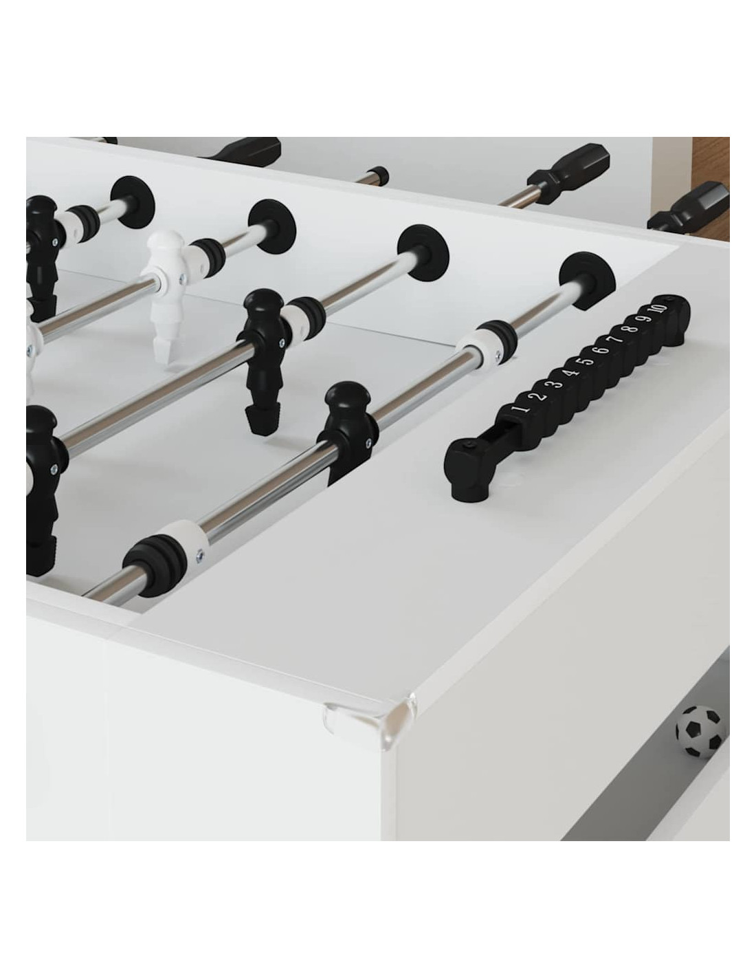 - Legno ingegnerizzato resistente: Questo tavolo da calcetto è realizzato in legno ingegnerizzato robusto e resistente all'abrasione, che assicura che il tavolo duri a lungo. È perfetto per chi cerca qualità e resistenza per ore di divertimento.