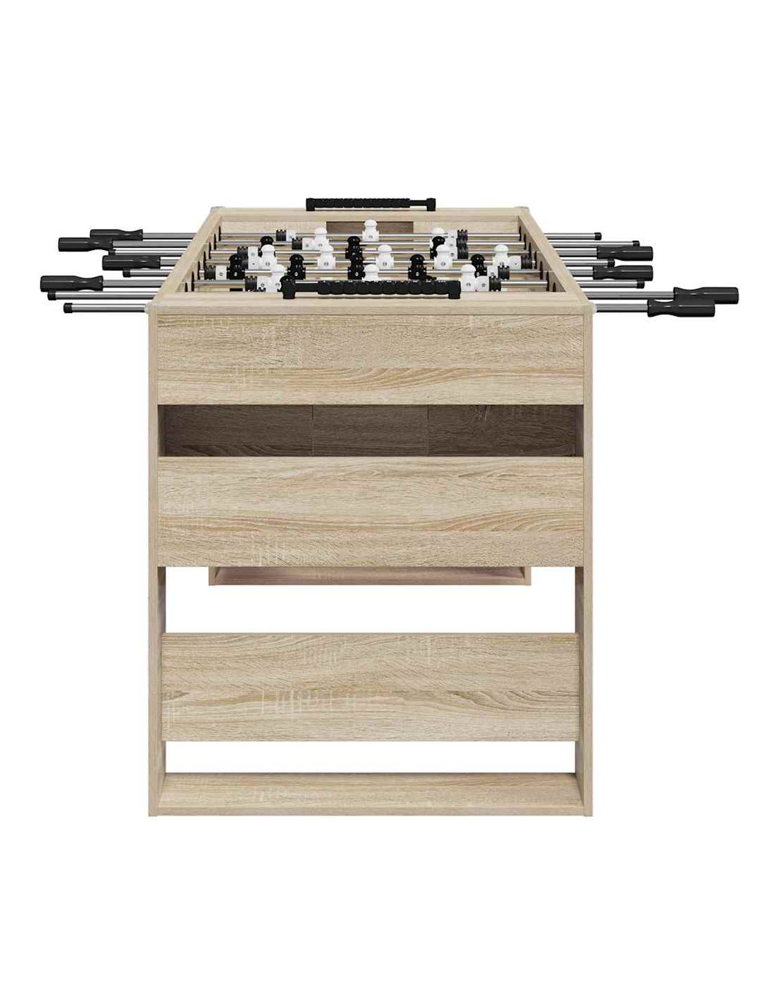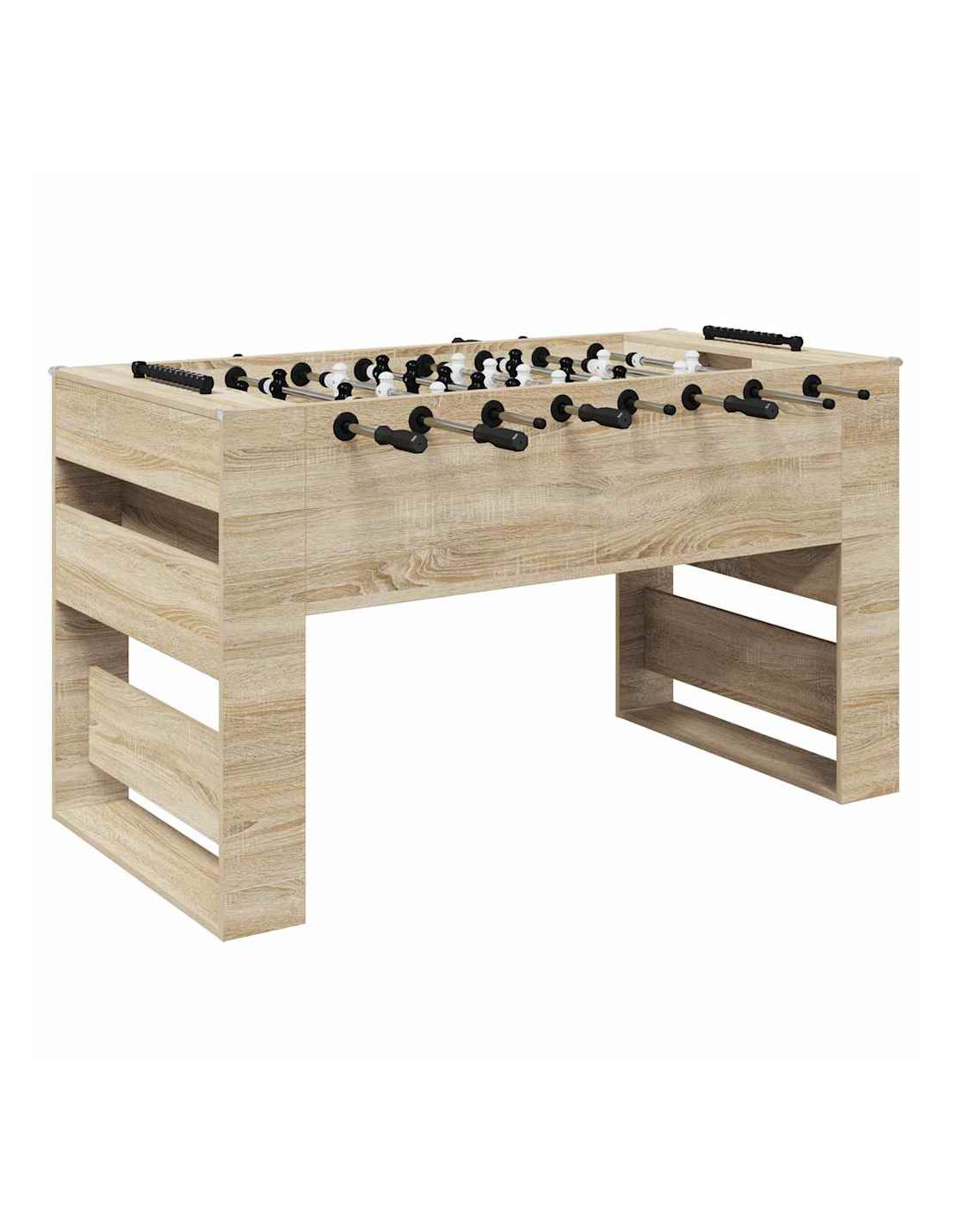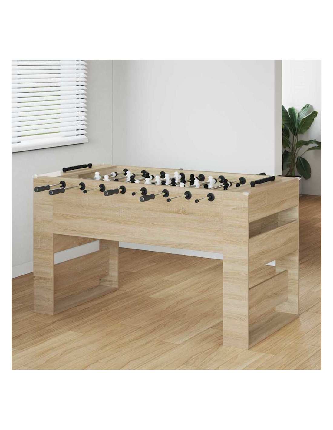Il tavolo da calcetto in legno ingegnerizzato è per chi ama sia lo stile che il divertimento. La sua estetica moderna e le linee pulite si adattano a qualsiasi sala giochi e offrono intrattenimento senza fine per la famiglia e gli amici. Con la finitura opaca e le maniglie ergonomiche, questo tavolo ha un aspetto imponente e consente un controllo ottimale della presa per un'esperienza di gioco piacevole per tutti, indipendentemente dalle abilità. È perfetto per l'uso interno e rappresenta un eccellente punto focale per partite amichevoli.