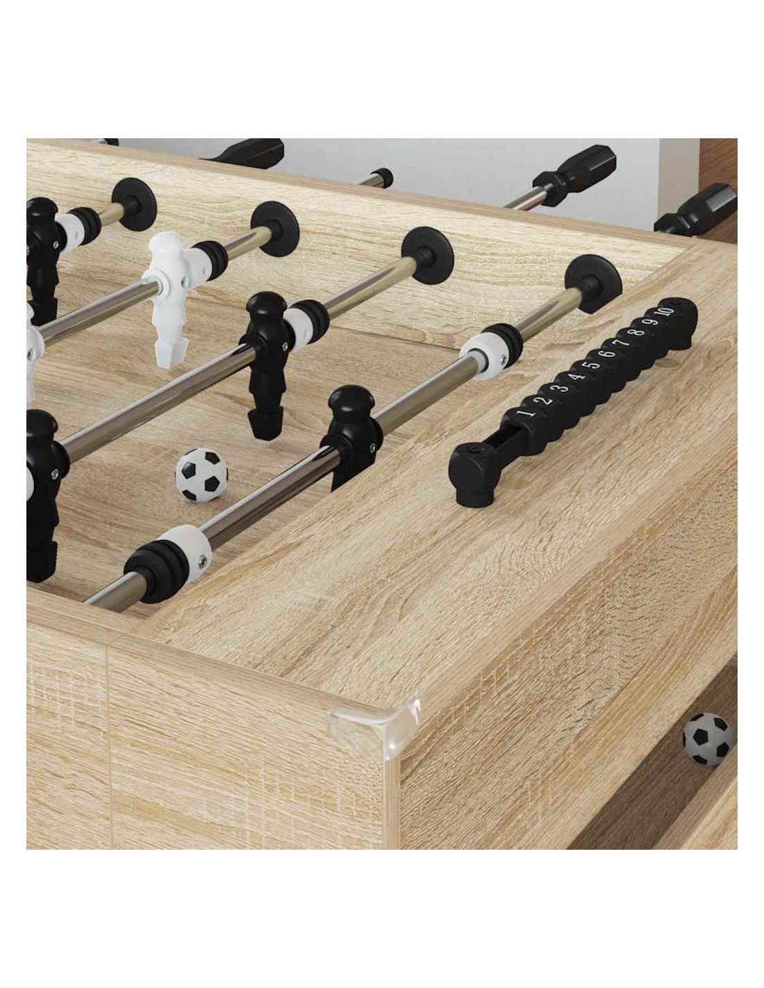 - Legno ingegnerizzato resistente: Questo tavolo da calcetto è realizzato in legno ingegnerizzato robusto e resistente all'abrasione, che assicura che il tavolo duri a lungo. È perfetto per chi cerca qualità e resistenza per ore di divertimento.