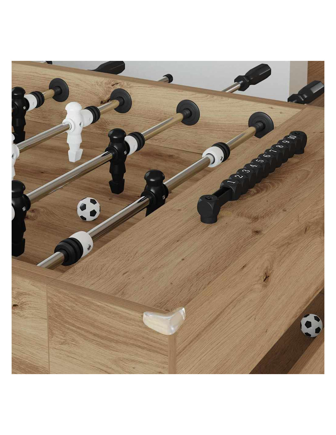 - Legno ingegnerizzato resistente: Questo tavolo da calcetto è realizzato in legno ingegnerizzato robusto e resistente all'abrasione, che assicura che il tavolo duri a lungo. È perfetto per chi cerca qualità e resistenza per ore di divertimento.