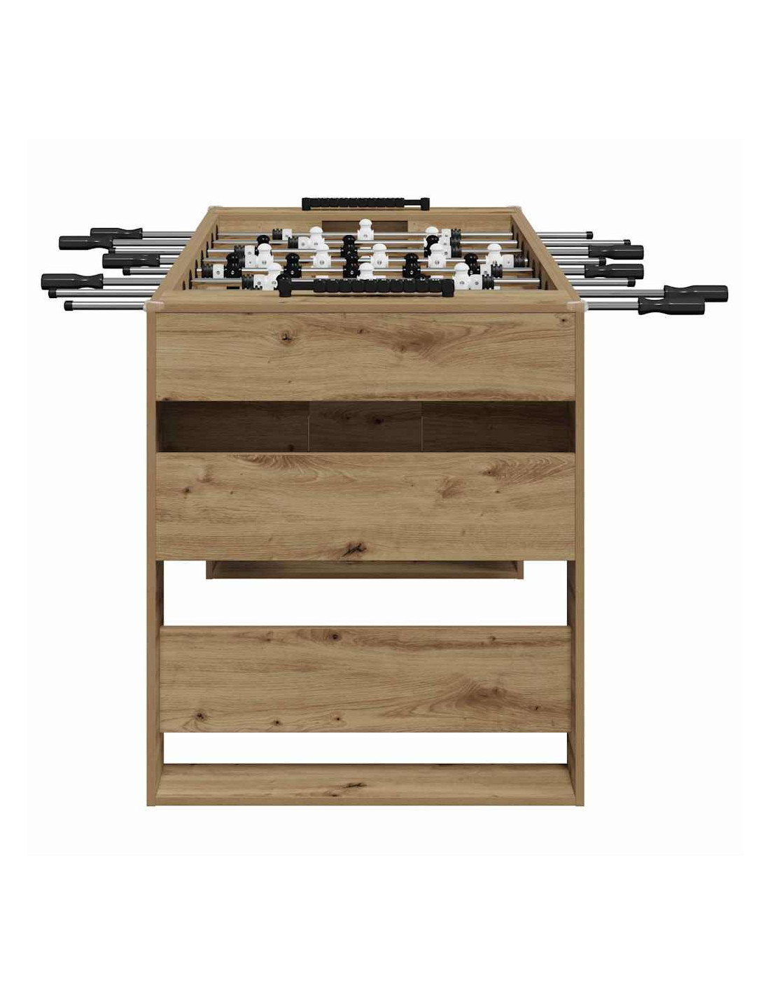 Il tavolo da calcetto in legno ingegnerizzato è per chi ama sia lo stile che il divertimento. La sua estetica moderna e le linee pulite si adattano a qualsiasi sala giochi e offrono intrattenimento senza fine per la famiglia e gli amici. Con la finitura opaca e le maniglie ergonomiche, questo tavolo ha un aspetto imponente e consente un controllo ottimale della presa per un'esperienza di gioco piacevole per tutti, indipendentemente dalle abilità. È perfetto per l'uso interno e rappresenta un eccellente punto focale per partite amichevoli.