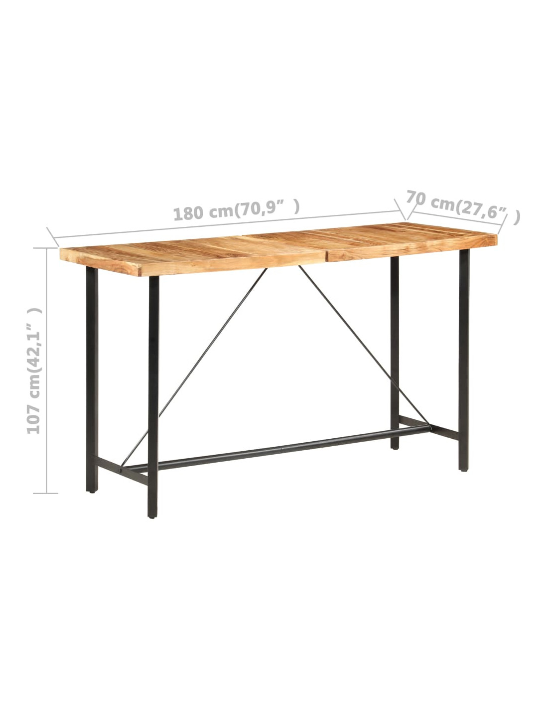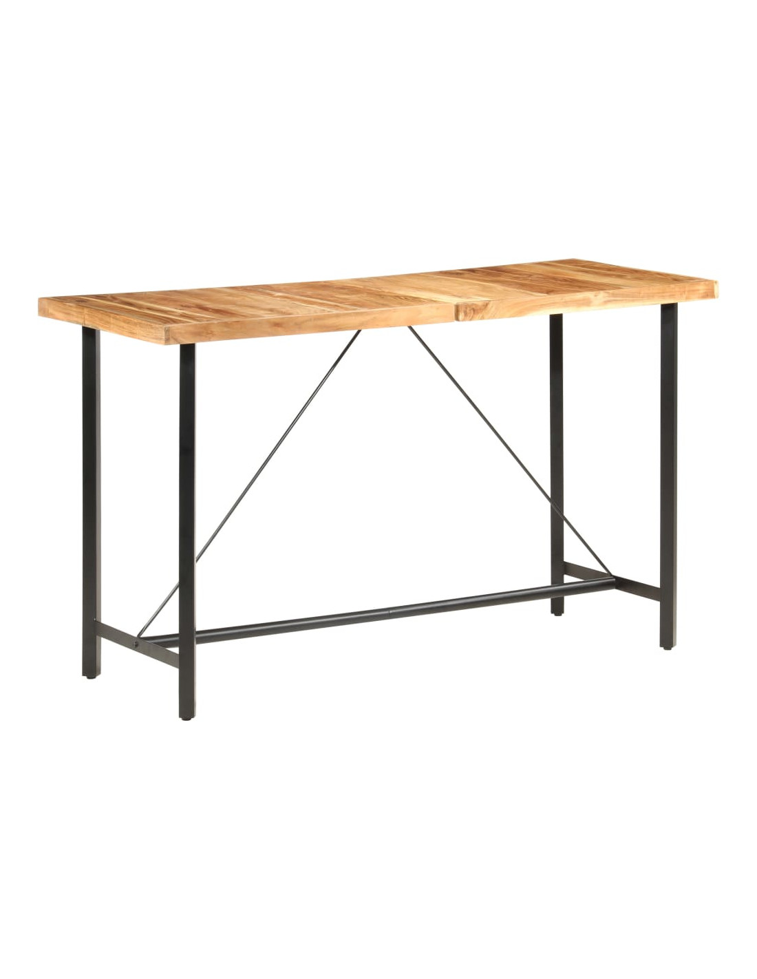 Il tavolo da bar è realizzato in legno massello di acacia, durevole, stabile e facile da pulire. La lavorazione artigianale e le bellissime venature del legno rendono ogni pezzo unico e leggermente diverso dagli altri. Le robuste gambe in acciaio rendono il tavolo da bar molto robusto e durevole e ne sottolineano lo spettacolare stile industriale. Il tavolo da bar è facile da assemblare.