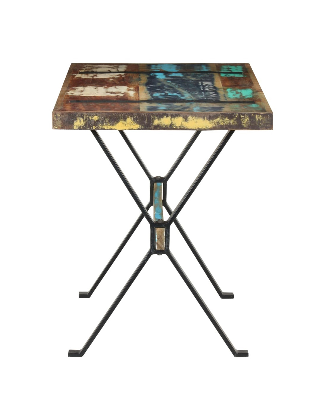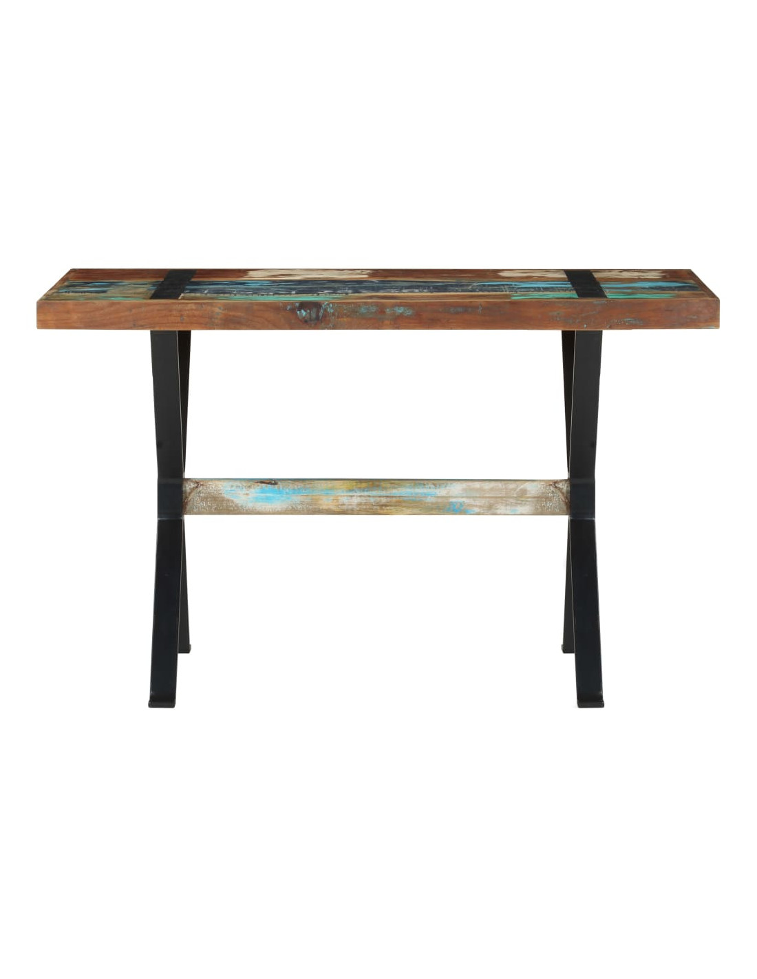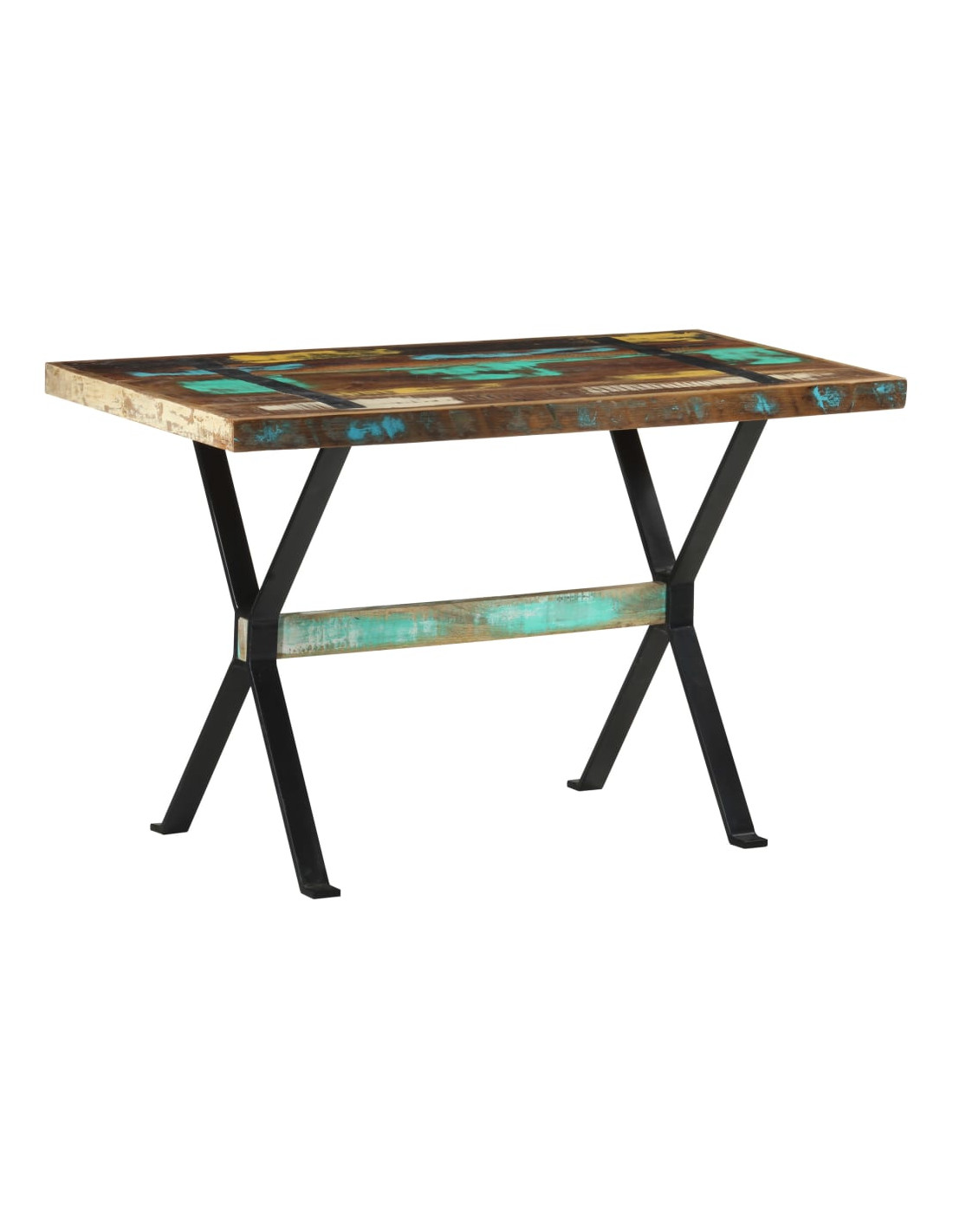 Il tavolo da pranzo è realizzato in legno massello di recupero, proveniente da travetti, pavimenti e travi di sostegno di vecchi edifici demoliti. Inoltre, può essere costituito da diversi tipi di legno come il teak, legno duro, legno tropicale, legno di mango, ecc. Ciò significa che il legno di recupero mantiene tutte le caratteristiche di questi diversi tipi di legno. Il legno di recupero è già invecchiato, stagionato ed essiccato. Quindi, non si restringe o si piega. Le robuste gambe in acciaio verniciato a polvere aggiungono ulteriore stabilità al tavolo.