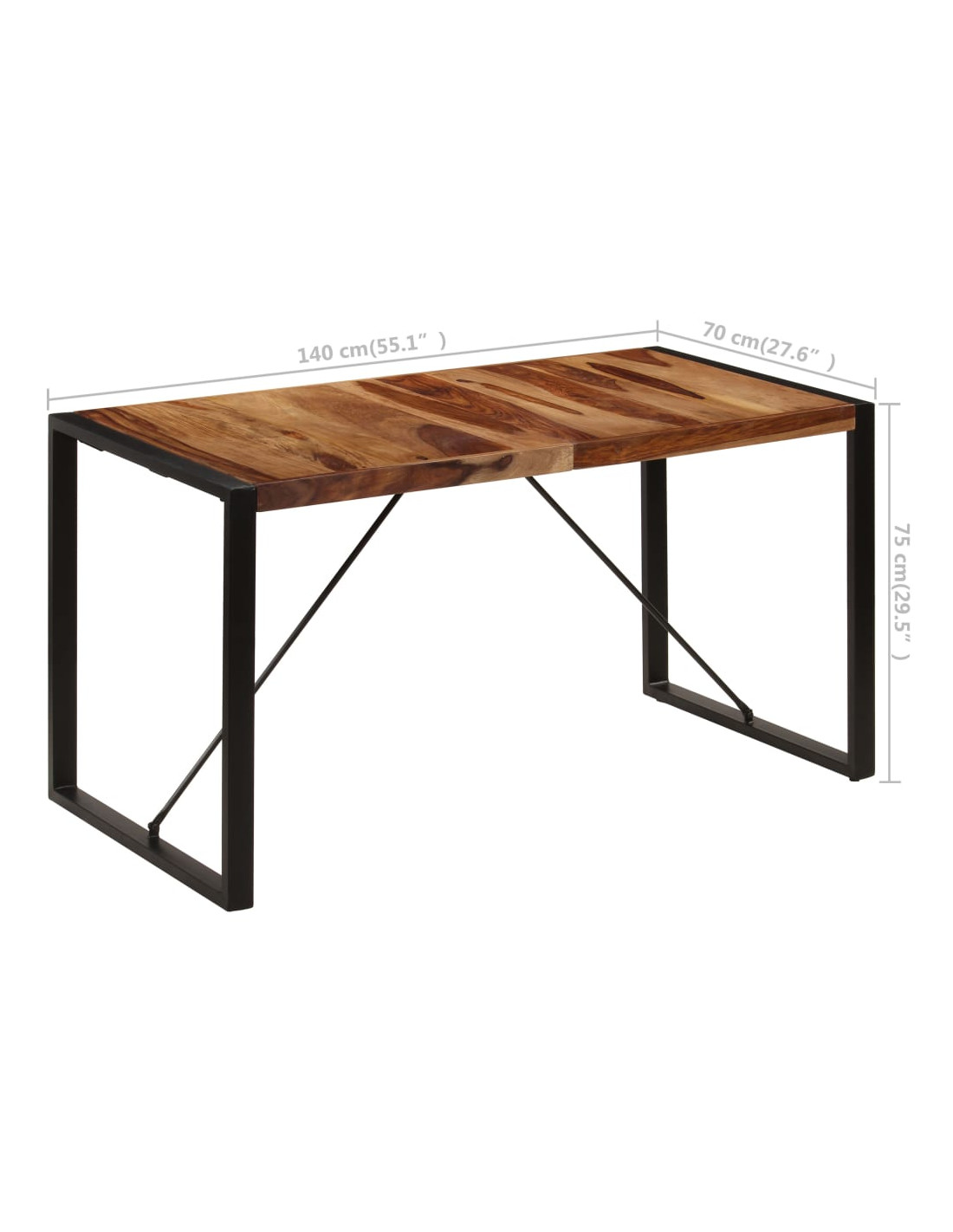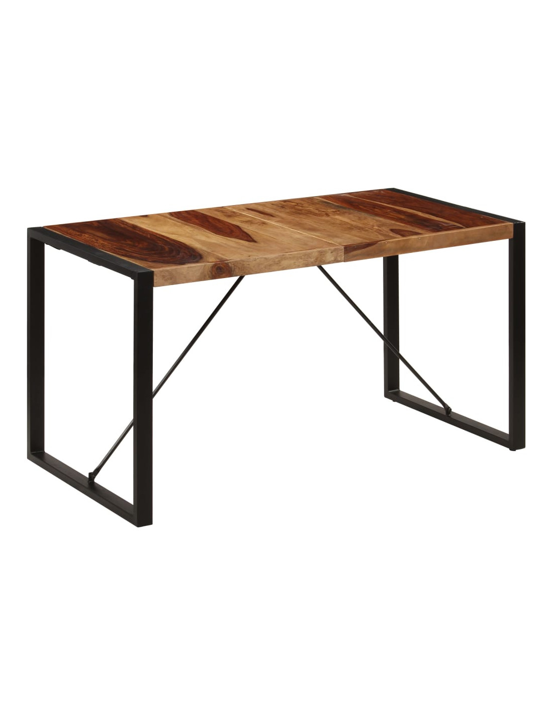 Il tavolo da pranzo è realizzato in legno massello di sheesham, conosciuto anche come palissandro o dalbergia; è un legno duro tropicale, famoso per le sue venature naturali e la grana liscia. Non è inoltre soggetto a deformazioni o alla formazione di spaccature. La raffinata maestria artigianale va ad esaltare lo spettacolare stile retrò del tavolo. Le gambe in acciaio verniciato a polvere forniscono un carattere industriale al tavolo, completandolo. Ogni fase del processo di lavorazione, quali lucidatura o laccatura, è stata eseguita con la massima cura. L' assemblaggio è facile.
