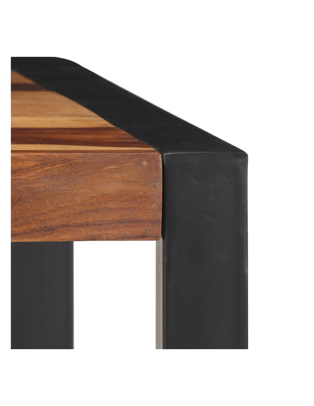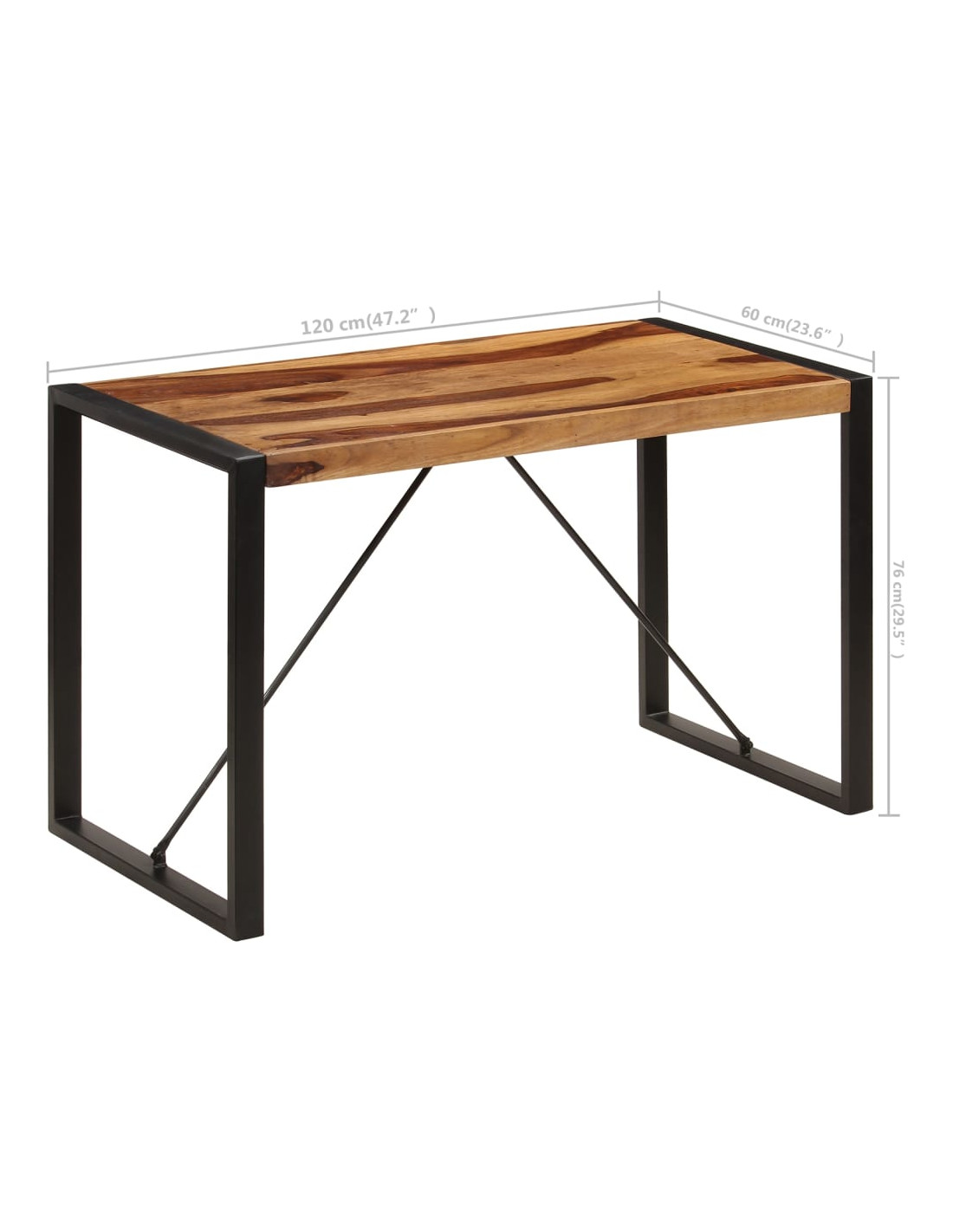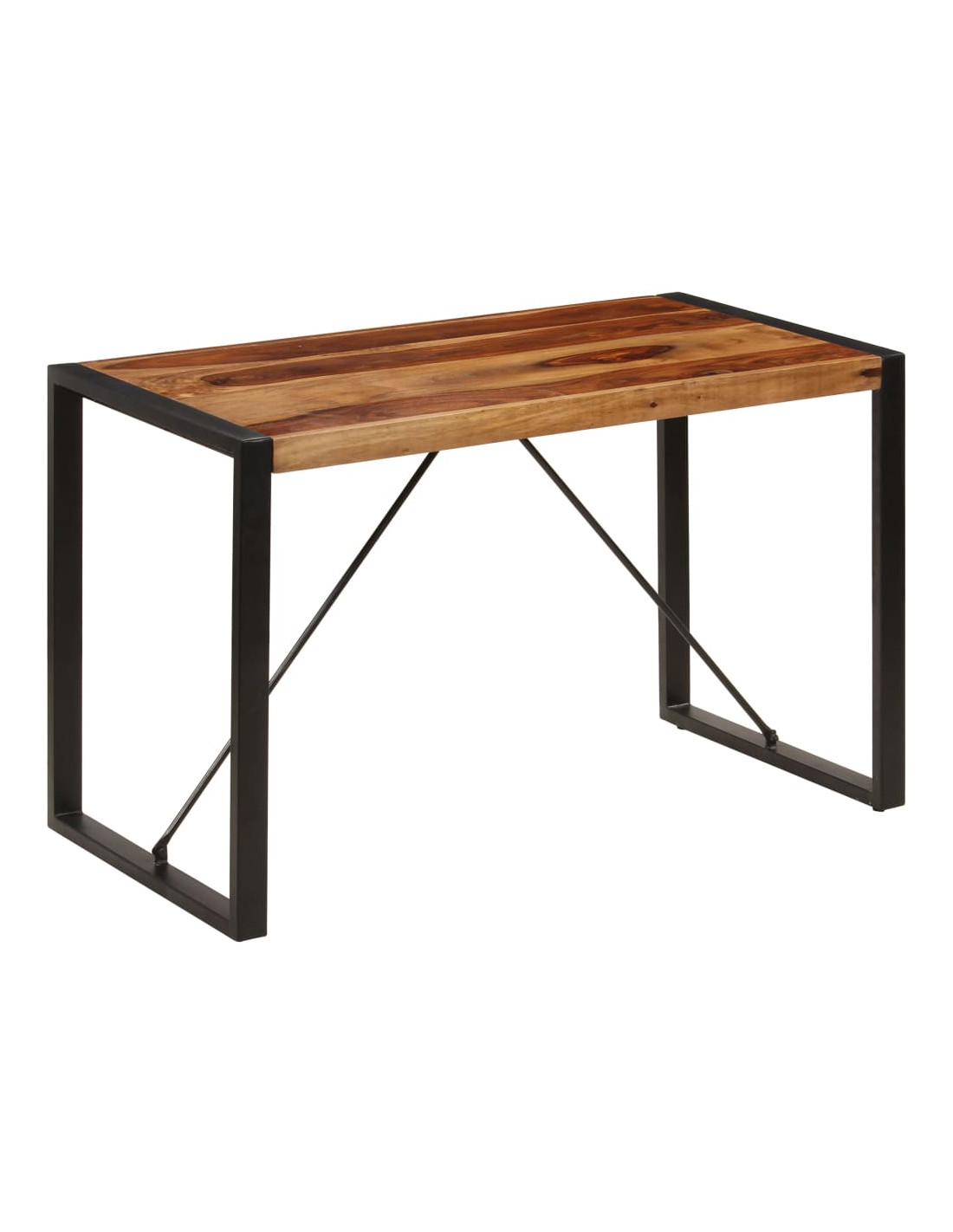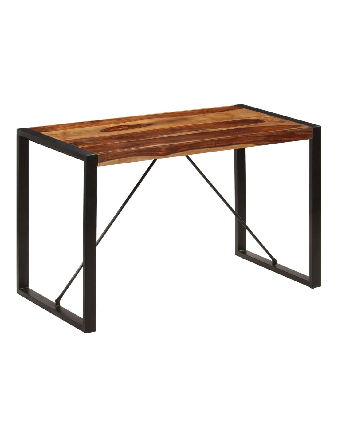 Il tavolo da pranzo è realizzato in legno massello di sheesham, conosciuto anche come palissandro o dalbergia; è un legno duro tropicale, famoso per le sue venature naturali e la grana liscia. Non è inoltre soggetto a deformazioni o alla formazione di spaccature. La raffinata maestria artigianale va ad esaltare lo spettacolare stile retrò del tavolo. Le gambe in acciaio verniciato a polvere forniscono un carattere industriale al tavolo, completandolo. Ogni fase del processo di lavorazione, quali lucidatura o laccatura, è stata eseguita con la massima cura. L' assemblaggio è facile.