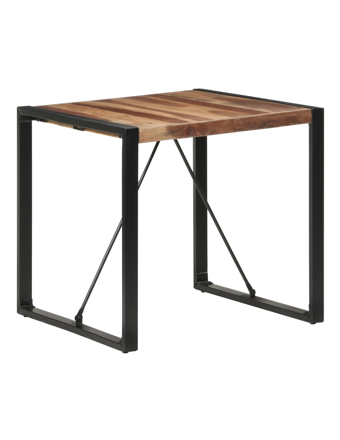 Il tavolo da pranzo è realizzato in legno massello di acacia e di hevea, che lo rendono stabile e durevole. La finitura in sheesham aggiunge le venature naturali e la consistenza morbida. La lavorazione artigianale e le bellissime venature del legno rendono ogni mobile unico e leggermente diverso dagli altri. Le robuste gambe in acciaio verniciato a polvere aggiungono ulteriore stabilità al tavolo.