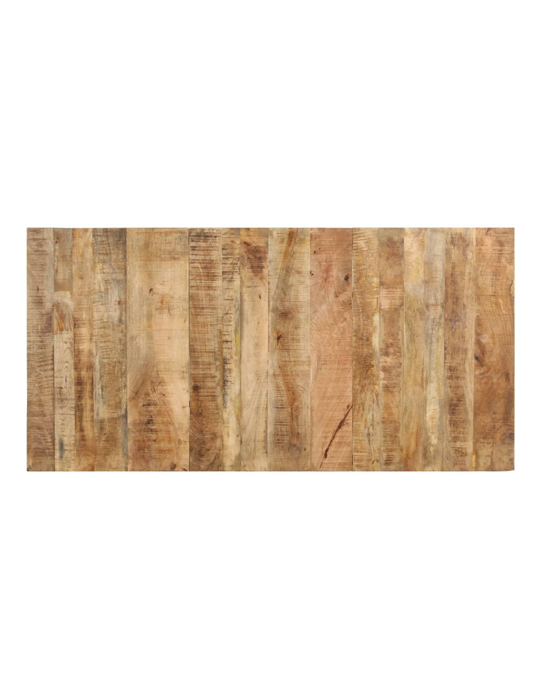Questo tavolo da cucina è realizzato in legno di mango grezzo, un legno duro tropicale in grado di sopportare pesi elevati e di resistere al meglio all'usura del tempo, rendendo il prodotto robusto e resistente. Questo tavolo da pranzo è dotato di gambe in ferro verniciato a polvere, che rendono il tavolo molto solido e durevole. Il piano del tavolo in legno può essere utilizzato per poggiarvi cibi, bevande o altri oggetti decorativi.