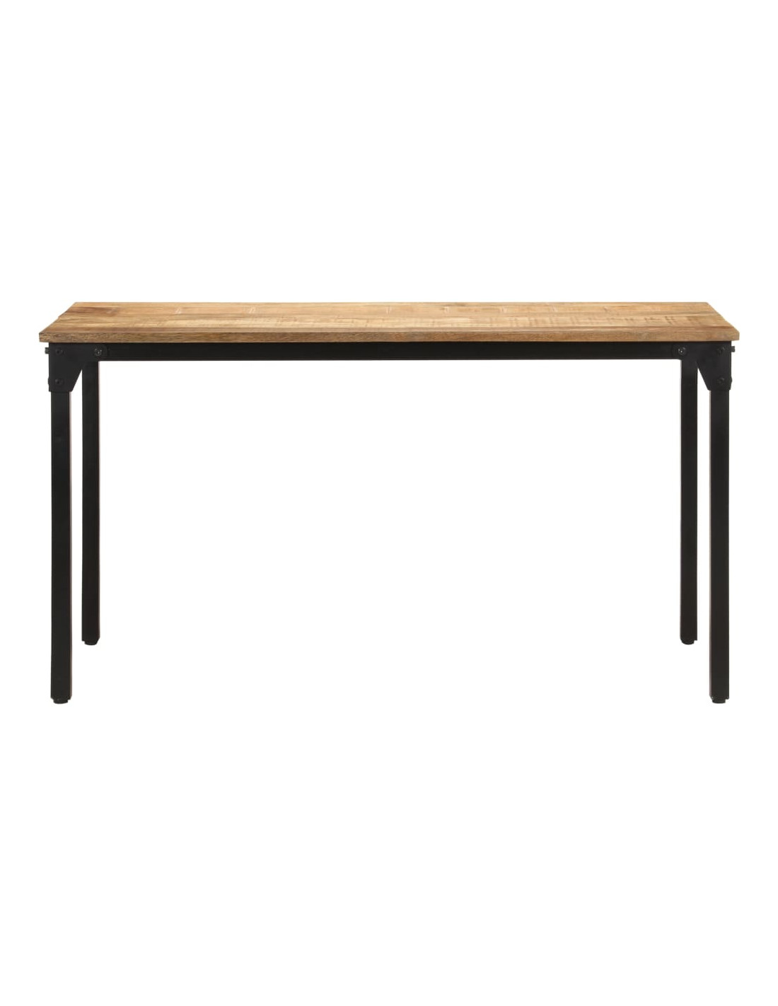 Questo tavolo da cucina è realizzato in legno di mango grezzo, un legno duro tropicale in grado di sopportare pesi elevati e di resistere al meglio all'usura del tempo, rendendo il prodotto robusto e resistente. Questo tavolo da pranzo è dotato di gambe in ferro verniciato a polvere, che rendono il tavolo molto solido e durevole. Il piano del tavolo in legno può essere utilizzato per poggiarvi cibi, bevande o altri oggetti decorativi.