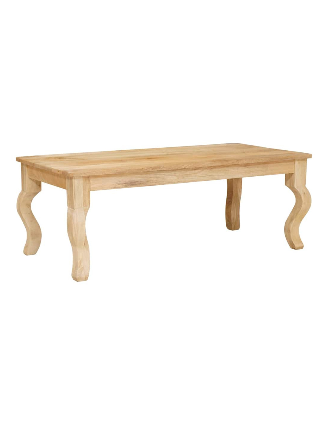 Questo tavolino da caffè ha un fascino rustico e moderno che si adatta a qualsiasi stile di soggiorno. È realizzato in legno massello di mango, super resistente, e quel caldo tono beige aggiunge classe, rendendolo perfetto per stanze contemporanee e tradizionali.