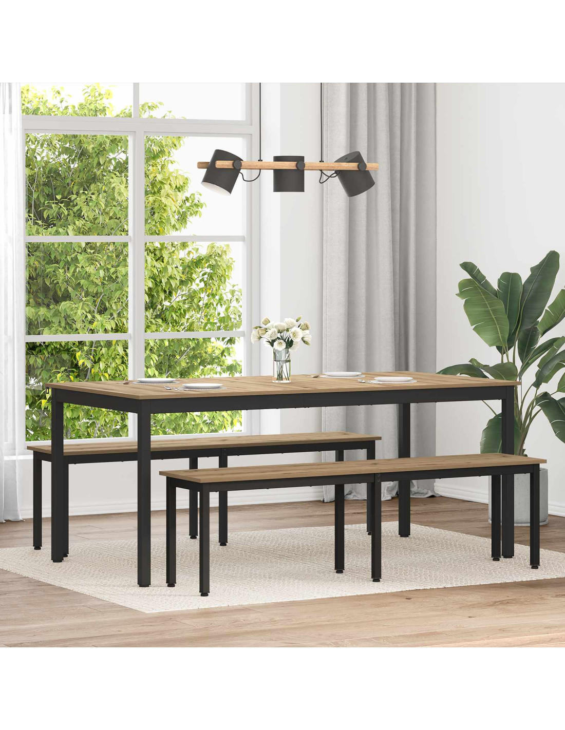 - Superficie in legno ingegnerizzato Il tavolo ha una solida superficie in legno ingegnerizzato, garantendo durata e resistenza all'usura quotidiana. Facile da pulire, questo materiale ha anche una finitura elegante, migliorando l'aspetto del tuo spazio pranzo. La sua texture liscia è perfetta per incontri sociali e cene tranquille in famiglia.