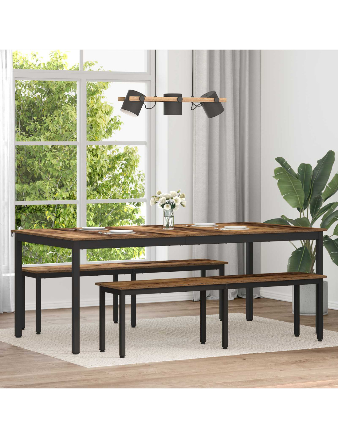 - Superficie in legno ingegnerizzato Il tavolo ha una solida superficie in legno ingegnerizzato, garantendo durata e resistenza all'usura quotidiana. Facile da pulire, questo materiale ha anche una finitura elegante, migliorando l'aspetto del tuo spazio pranzo. La sua texture liscia è perfetta per incontri sociali e cene tranquille in famiglia.