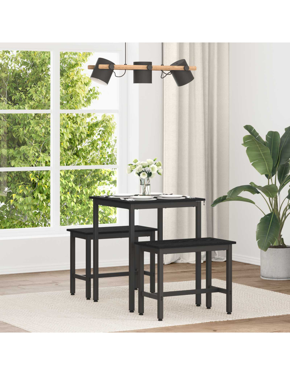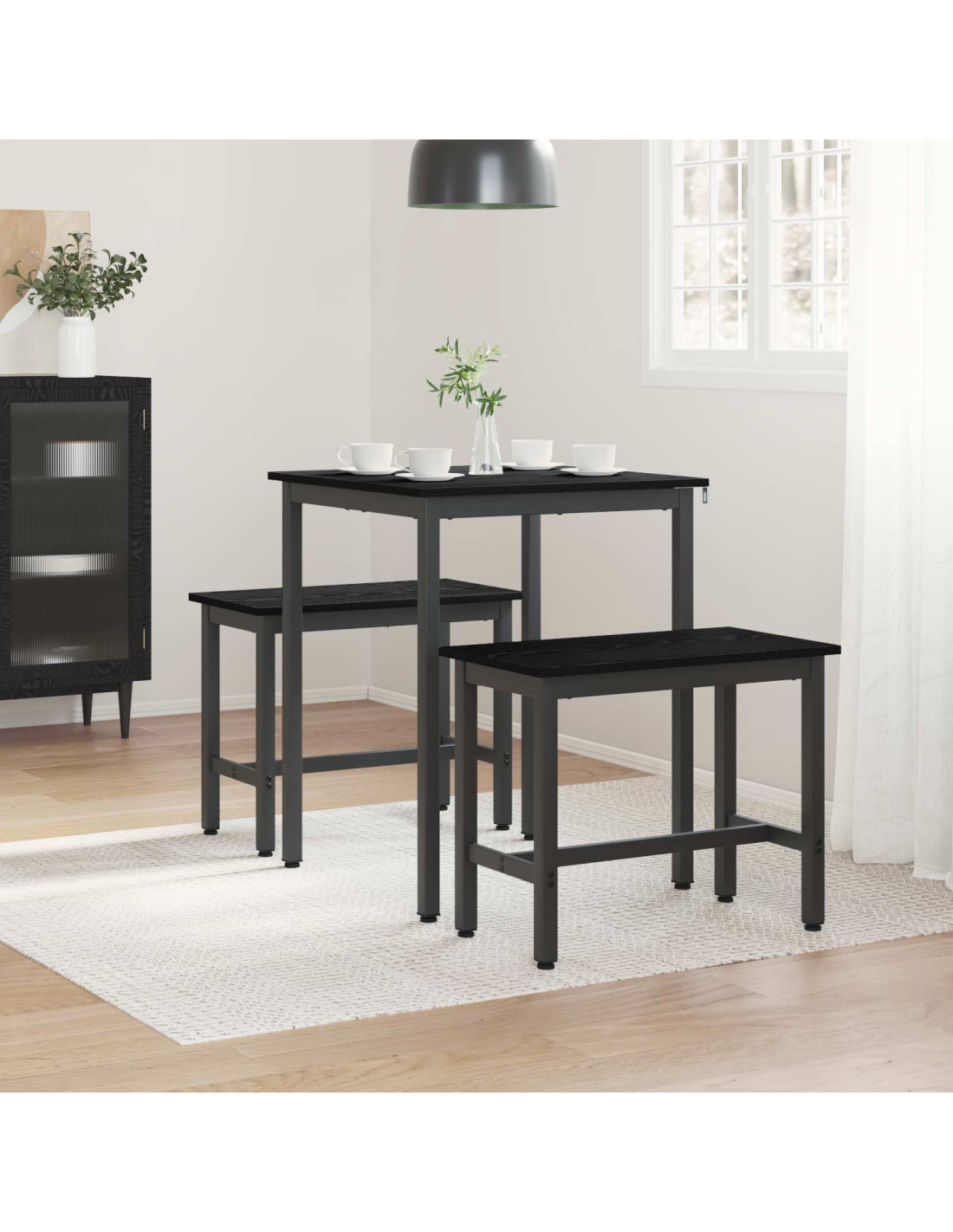 - Struttura in metallo nero La snella struttura in metallo nero offre un supporto robusto al tavolo, garantendo stabilità durante l'uso. Il look contemporaneo si integra perfettamente con il tuo arredamento moderno, rendendolo ideale per sale da pranzo e zone living aperte.