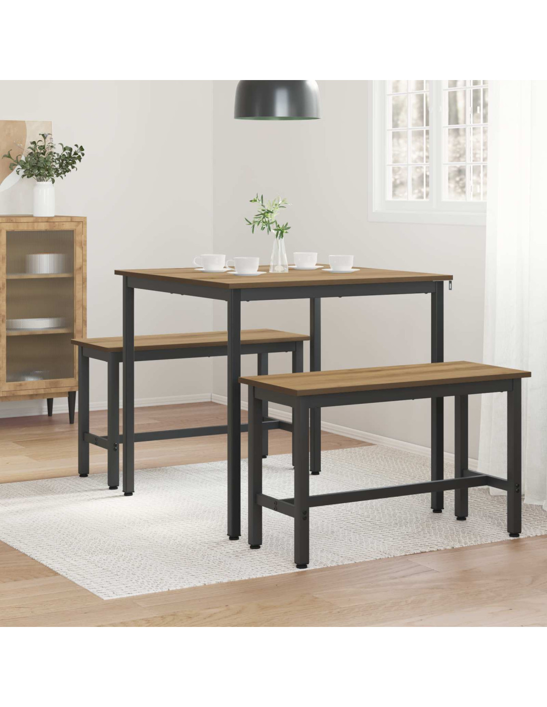 - Superficie in legno ingegnerizzato Il tavolo ha una solida superficie in legno ingegnerizzato, garantendo durata e resistenza all'usura quotidiana. Facile da pulire, questo materiale ha anche una finitura elegante, migliorando l'aspetto del tuo spazio pranzo. La sua texture liscia è perfetta per incontri sociali e cene tranquille in famiglia.