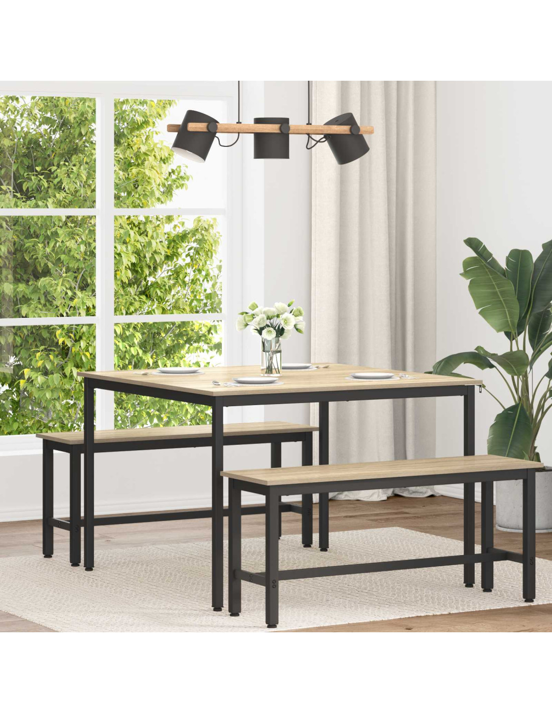 - Superficie in legno ingegnerizzato Il tavolo ha una solida superficie in legno ingegnerizzato, garantendo durata e resistenza all'usura quotidiana. Facile da pulire, questo materiale ha anche una finitura elegante, migliorando l'aspetto del tuo spazio pranzo. La sua texture liscia è perfetta per incontri sociali e cene tranquille in famiglia.