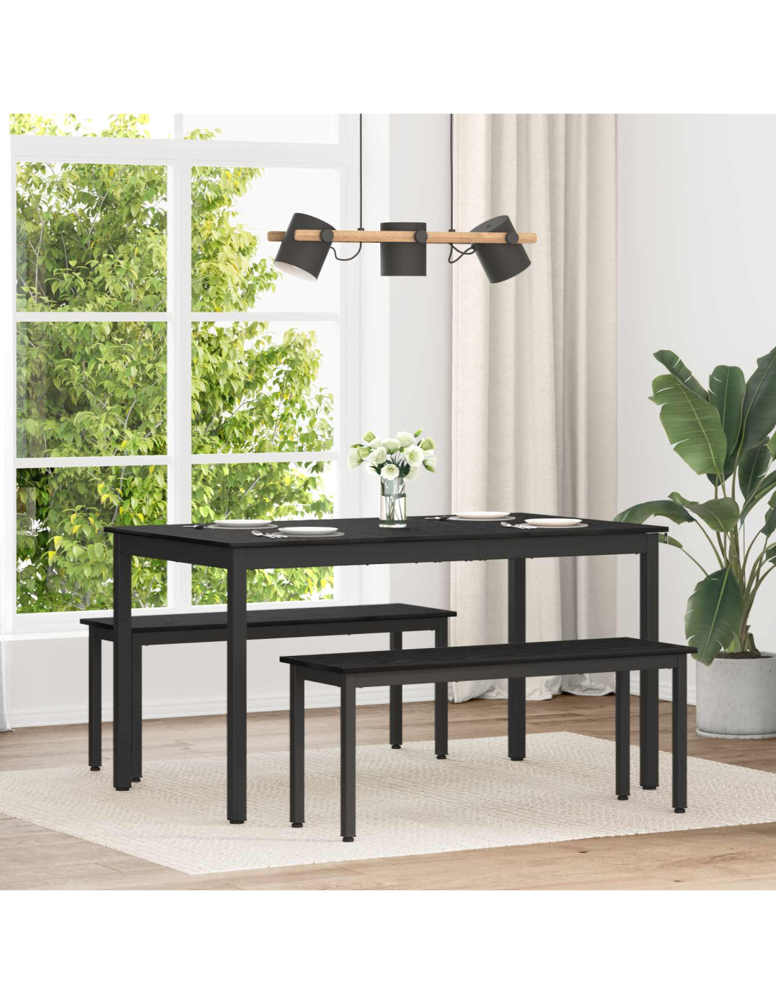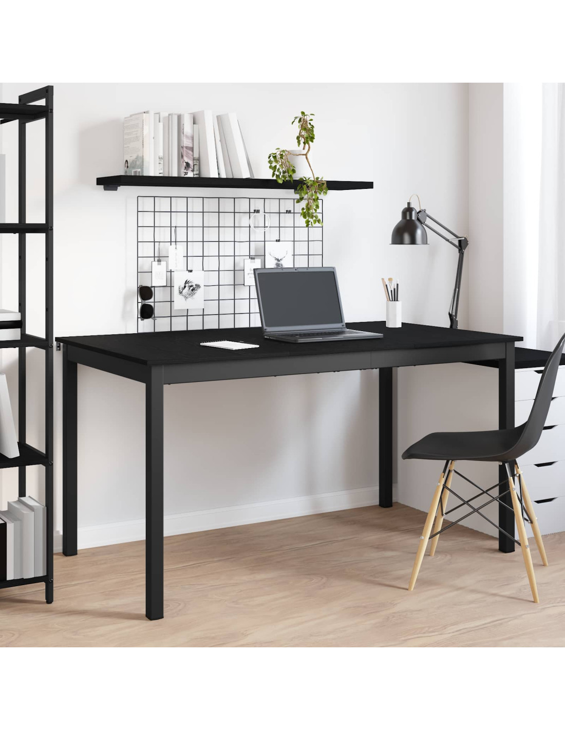 - Struttura in metallo nero La snella struttura in metallo nero offre un supporto robusto al tavolo, garantendo stabilità durante l'uso. Il look contemporaneo si integra perfettamente con il tuo arredamento moderno, rendendolo ideale per sale da pranzo e zone living aperte.