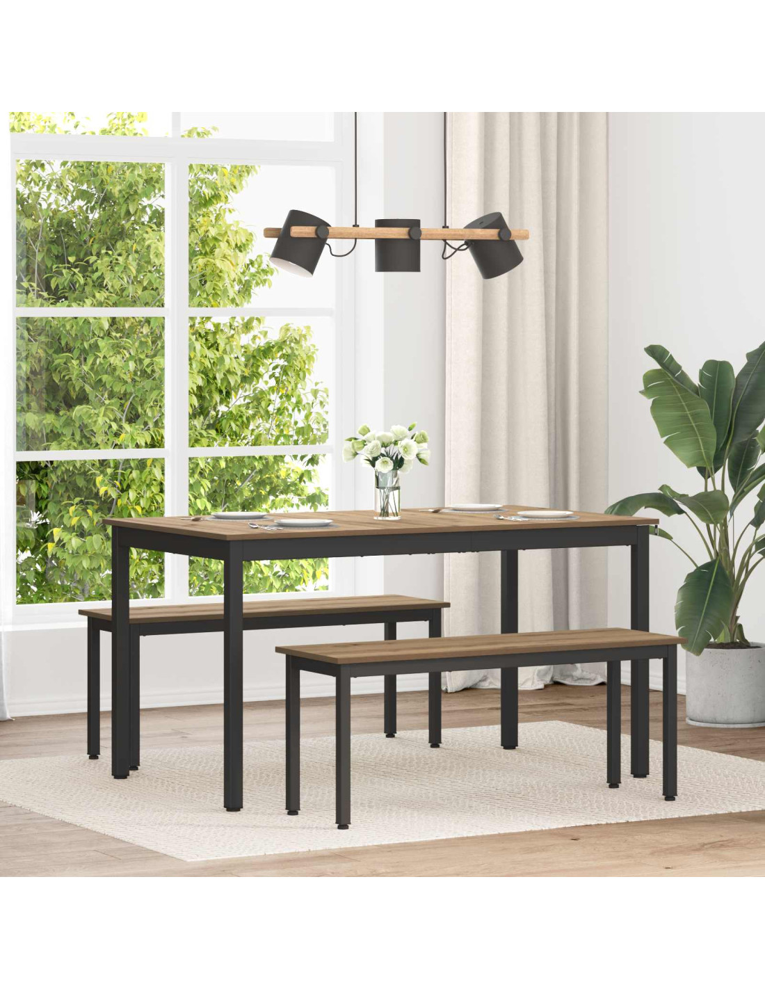 - Superficie in legno ingegnerizzato Il tavolo ha una solida superficie in legno ingegnerizzato, garantendo durata e resistenza all'usura quotidiana. Facile da pulire, questo materiale ha anche una finitura elegante, migliorando l'aspetto del tuo spazio pranzo. La sua texture liscia è perfetta per incontri sociali e cene tranquille in famiglia.