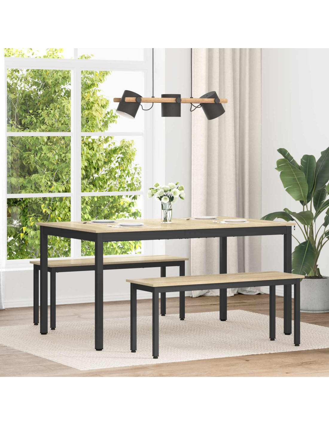 - Superficie in legno ingegnerizzato Il tavolo ha una solida superficie in legno ingegnerizzato, garantendo durata e resistenza all'usura quotidiana. Facile da pulire, questo materiale ha anche una finitura elegante, migliorando l'aspetto del tuo spazio pranzo. La sua texture liscia è perfetta per incontri sociali e cene tranquille in famiglia.