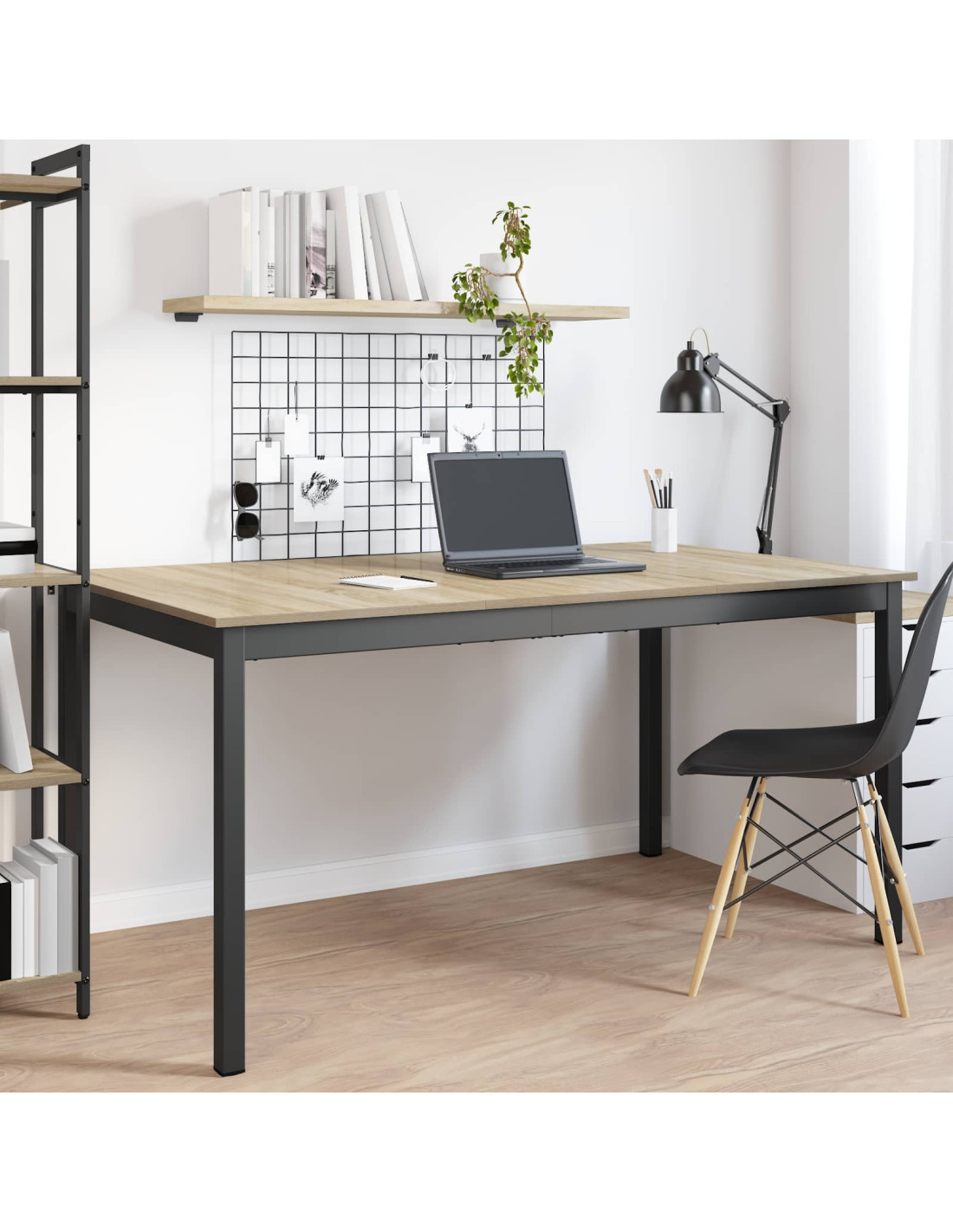 - Struttura in metallo nero La snella struttura in metallo nero offre un supporto robusto al tavolo, garantendo stabilità durante l'uso. Il look contemporaneo si integra perfettamente con il tuo arredamento moderno, rendendolo ideale per sale da pranzo e zone living aperte.