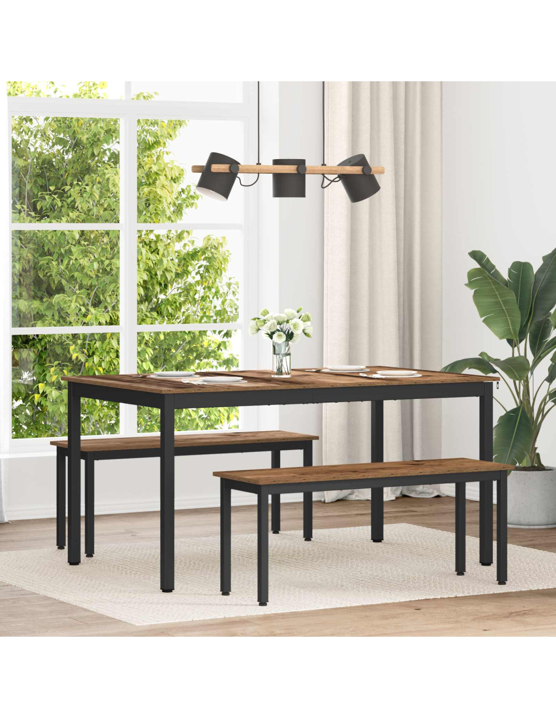 - Superficie in legno ingegnerizzato Il tavolo ha una solida superficie in legno ingegnerizzato, garantendo durata e resistenza all'usura quotidiana. Facile da pulire, questo materiale ha anche una finitura elegante, migliorando l'aspetto del tuo spazio pranzo. La sua texture liscia è perfetta per incontri sociali e cene tranquille in famiglia.