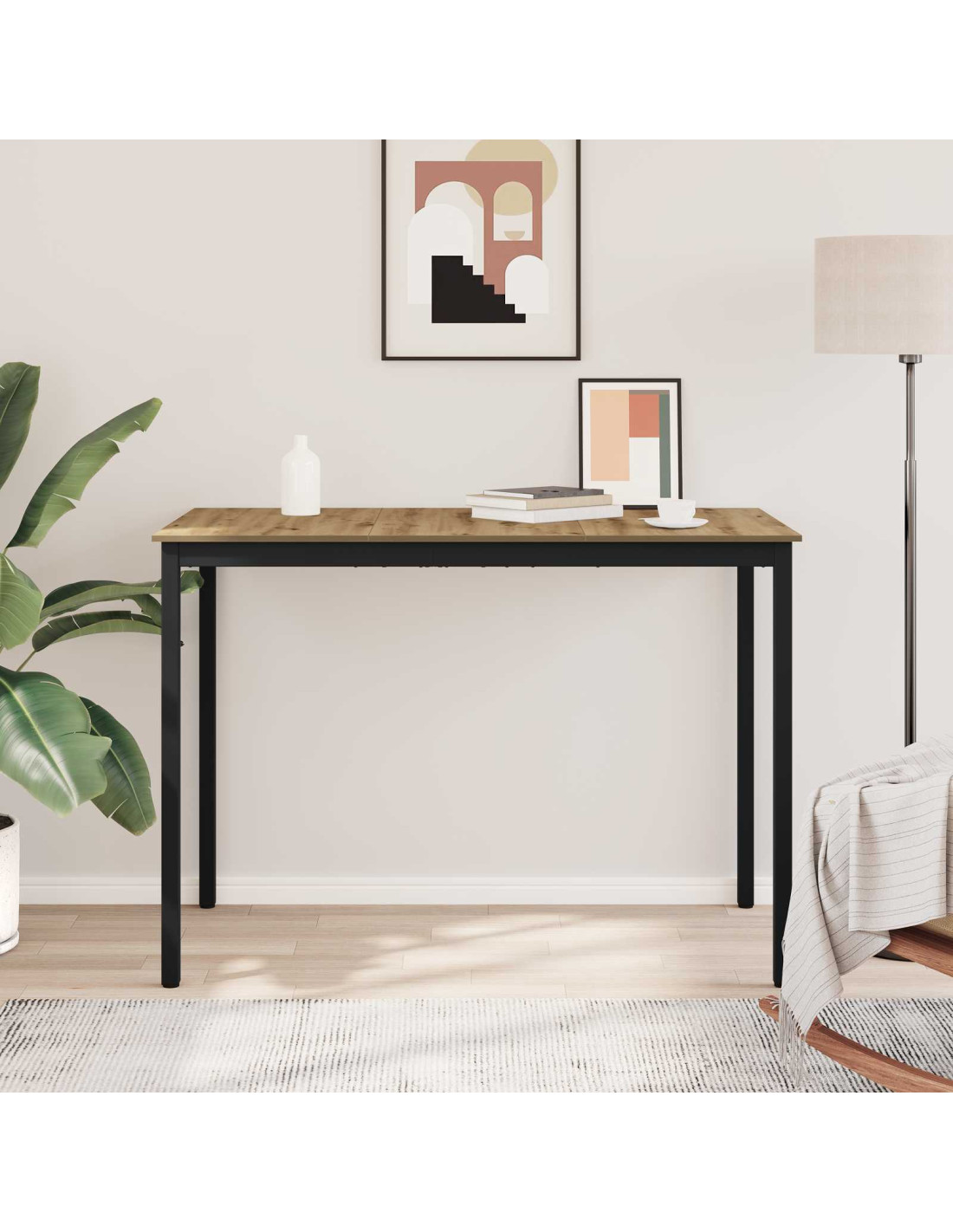 - Materiali solidi: La superficie è in legno ingegnerizzato, resistente e bella da vedere. Le gambe in metallo e il telaio sono robusti, garantendo stabilità per un uso frequente senza perdere il suo stile.