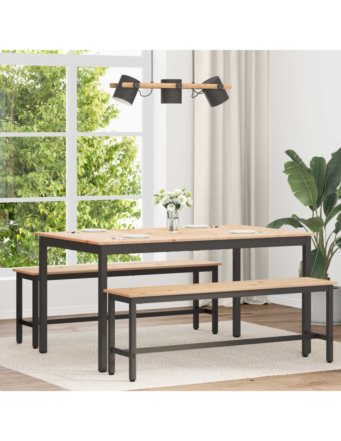 - Materiali di qualità: Realizzato principalmente in legno massello di pino, questo tavolo unisce forza ed eleganza. La venatura naturale del legno ne esalta il fascino moderno e lo rende resistente, garantendo anni di utilizzo.