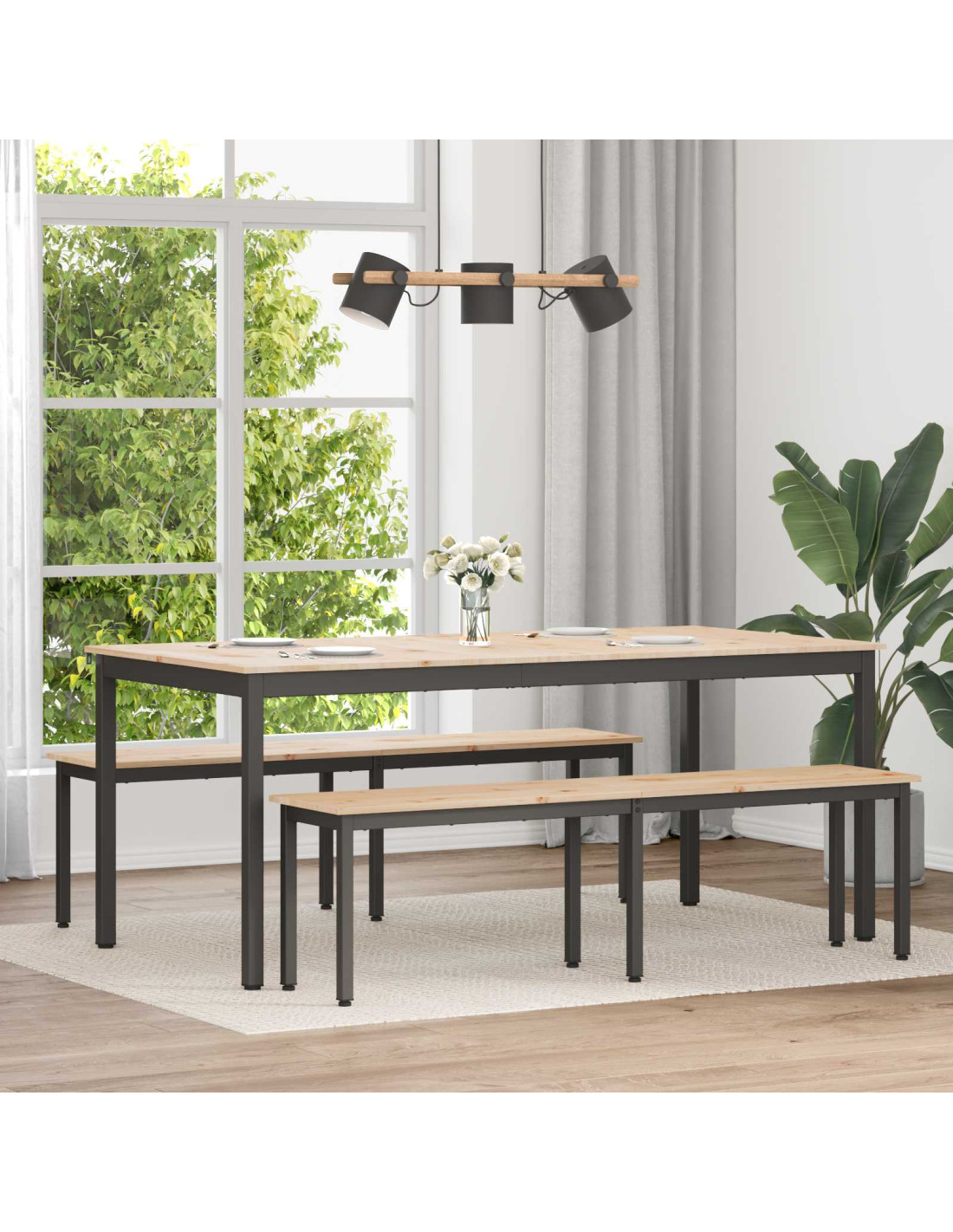 - Materiali di qualità: Realizzato principalmente in legno massello di pino, questo tavolo unisce forza ed eleganza. La venatura naturale del legno ne esalta il fascino moderno e lo rende resistente, garantendo anni di utilizzo.