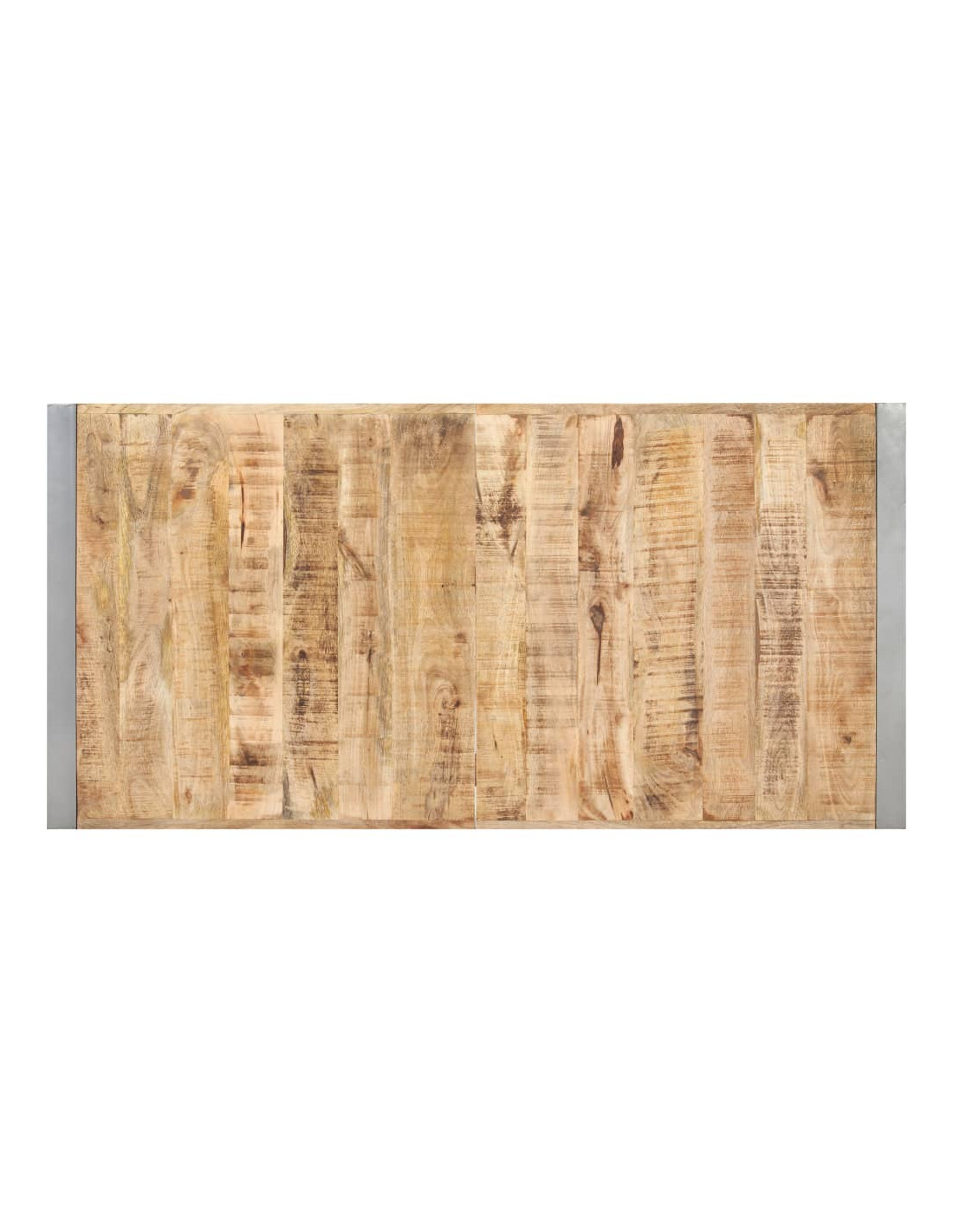 Questo tavolo da pranzo è realizzato in legno massello di mango grezzo, un legno duro tropicale in grado di sopportare anche pesi elevati e in grado di resistere al meglio alla normale usura del tempo. Questo materiale è anche estremamente solido e resistente. Le gambe in acciaio verniciato a polvere forniscono ulteriore solidità.