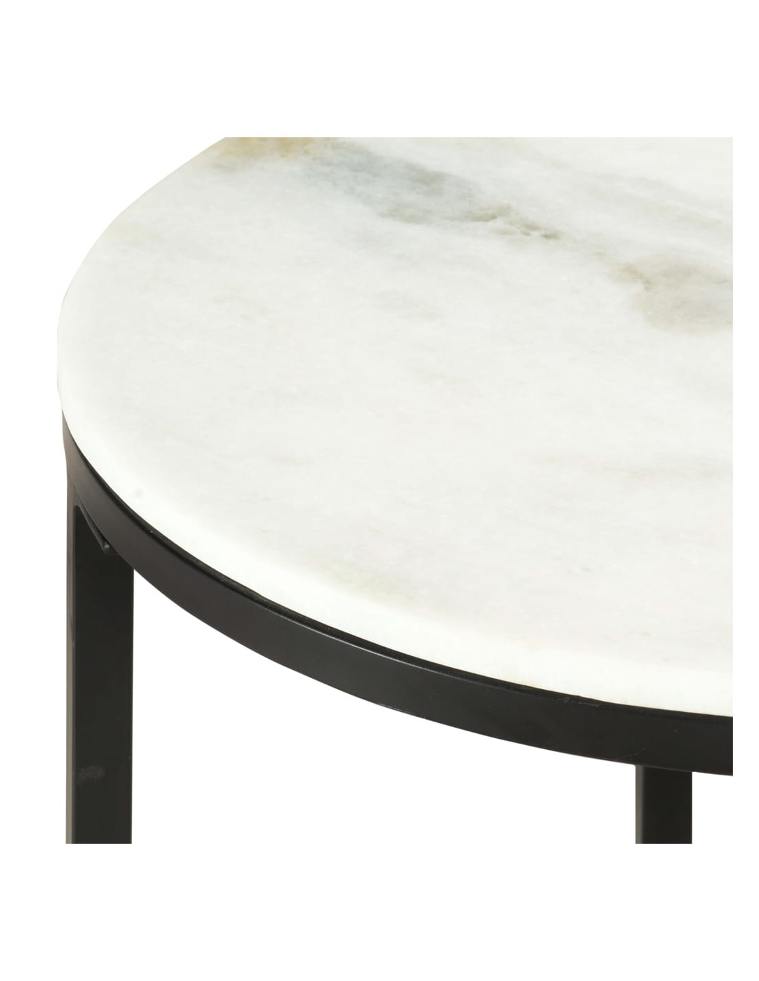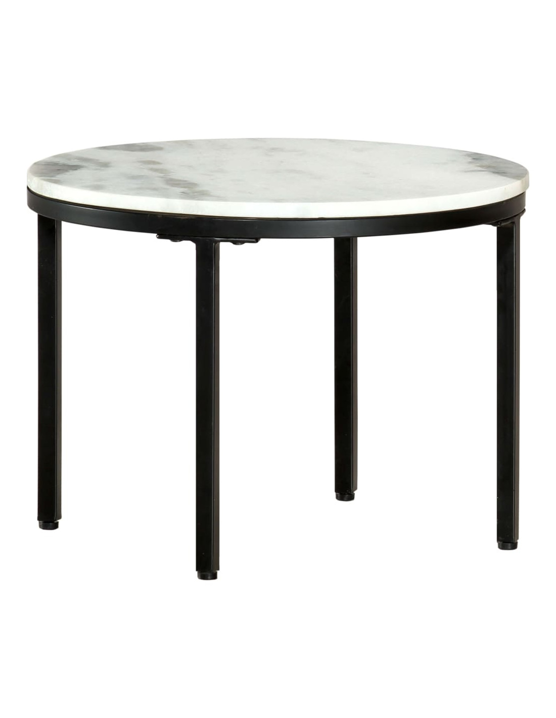 Il tavolino presenta un piano in vero marmo massiccio e gambe in acciaio verniciato a polvere nera, che è estremamente durevole e robusto. Il tavolino in marmo è facile da pulire semplicemente con un panno umido.
