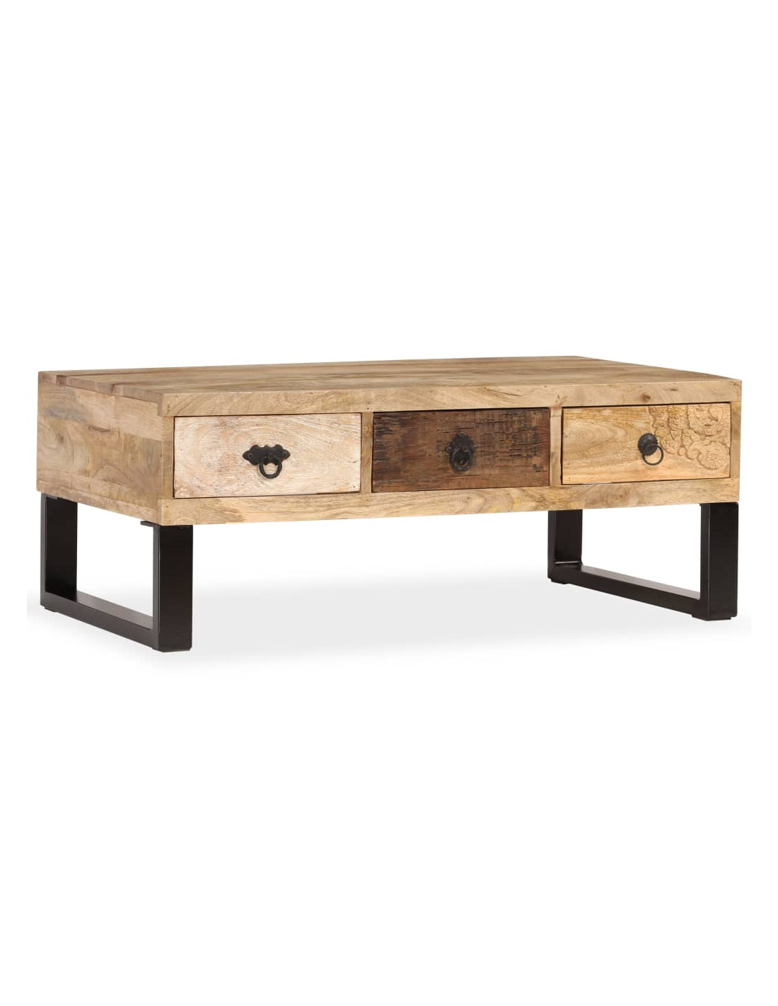 Questo tavolino da caffè in legno massello di mango, dallo spettacolare stile vintage, costituisce un complemento d'arredo sia pratico che decorativo.