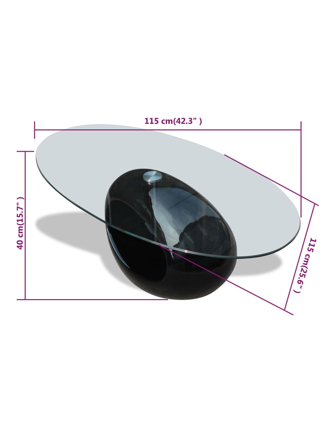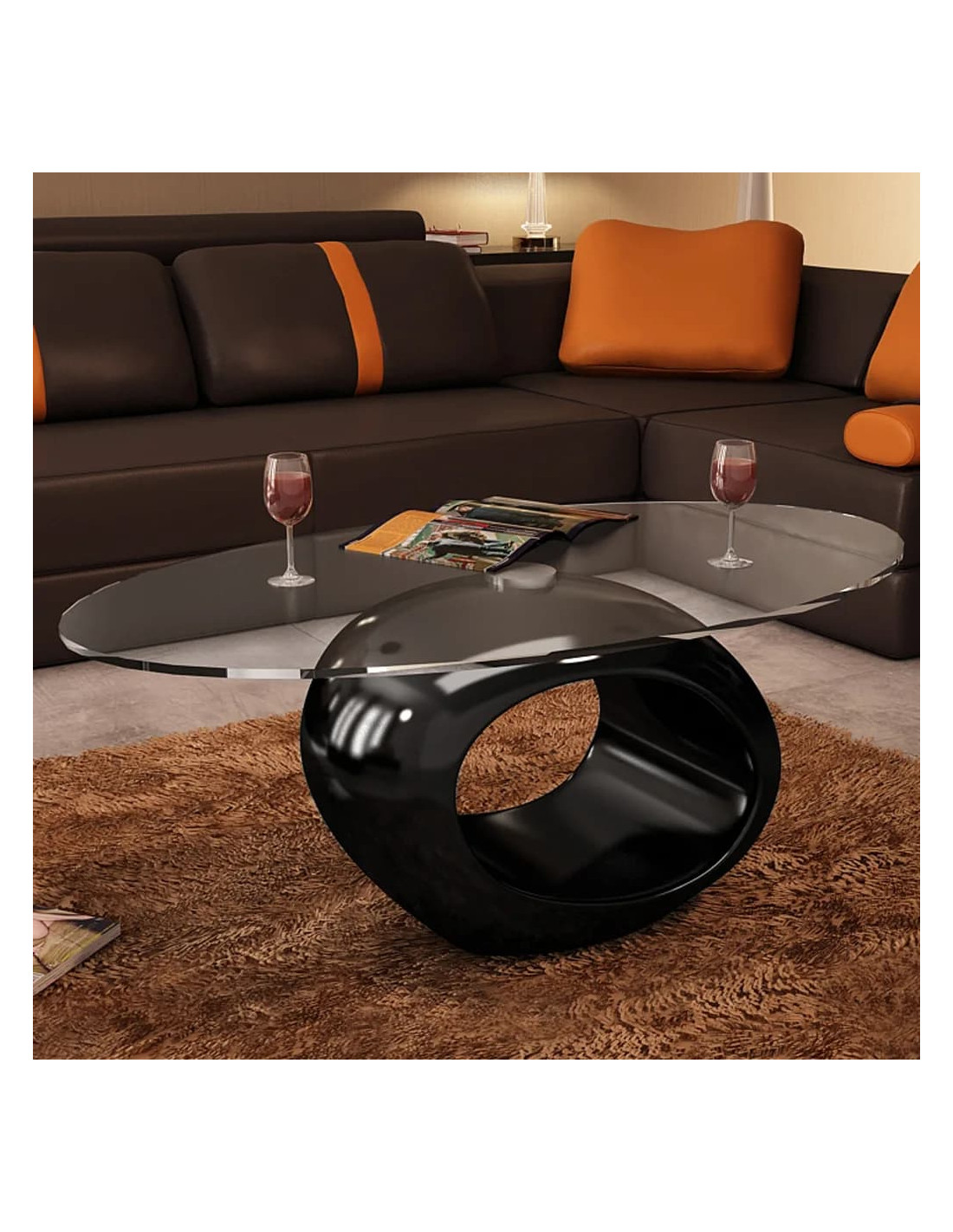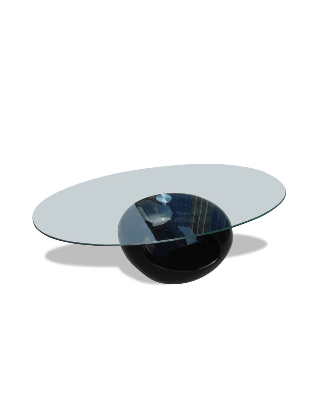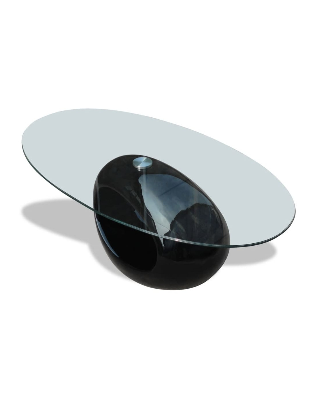 Questo tavolino da soggiorno presenta un design unico e organico. La sua base lucida e di forma ovale aggiungerà un tocco moderno al vostro spazio abitativo all'istante. Questo tavolino moderno può essere utilizzato nel tuo salotto come un comodo ripiano per mettere le tue bevande o altre necessità. Puoi anche portarlo nella tua camera da letto per usarlo come un comodino unico! Il vetro del tavolo è temperato per sicurezza.
