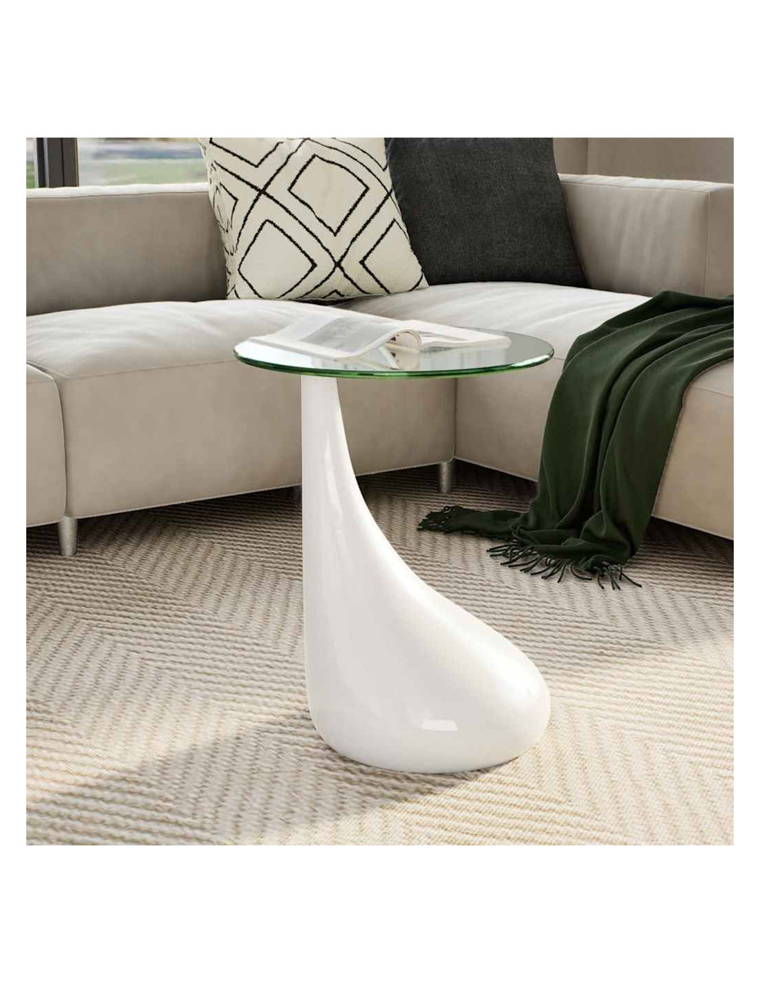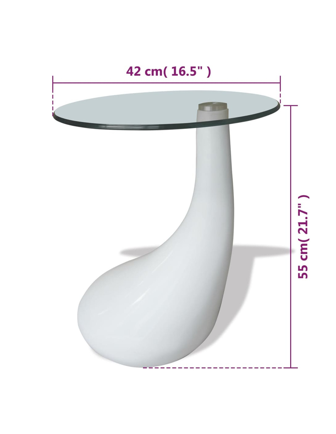 Questo tavolino da salotto di dimensioni ridotte ha uno splendido design che migliorerà l'arredamento esistente nel vostro spazio abitativo. L'esclusiva base a forma di goccia con una finitura bianca lucida conferisce al tavolo un aspetto elegante. È fantastico da affiancare a un divano o a una poltrona in soggiorno, o da usare come tavolino in camera da letto per offrire una comoda superficie per avere a portata di mano le bevande o qualsiasi altra necessità di cui avete bisogno. Il piano del tavolo è temperato per la vostra sicurezza.