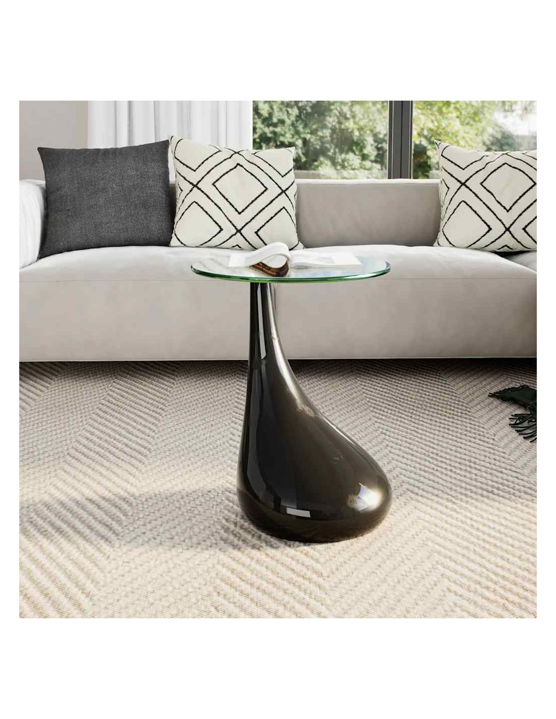 L'esclusiva base a forma di goccia d'acqua con finitura nera lucida conferisce al tavolo un aspetto elegante. Sarebbe bello posizionarlo accanto a un divano nel soggiorno, o essere usato come tavolino nella tua camera da letto per una comoda superficie per le tue bevande o qualsiasi altra necessità a portata di mano. Il piano del tavolo è temperato per la tua sicurezza.