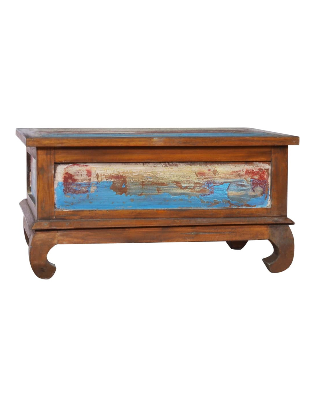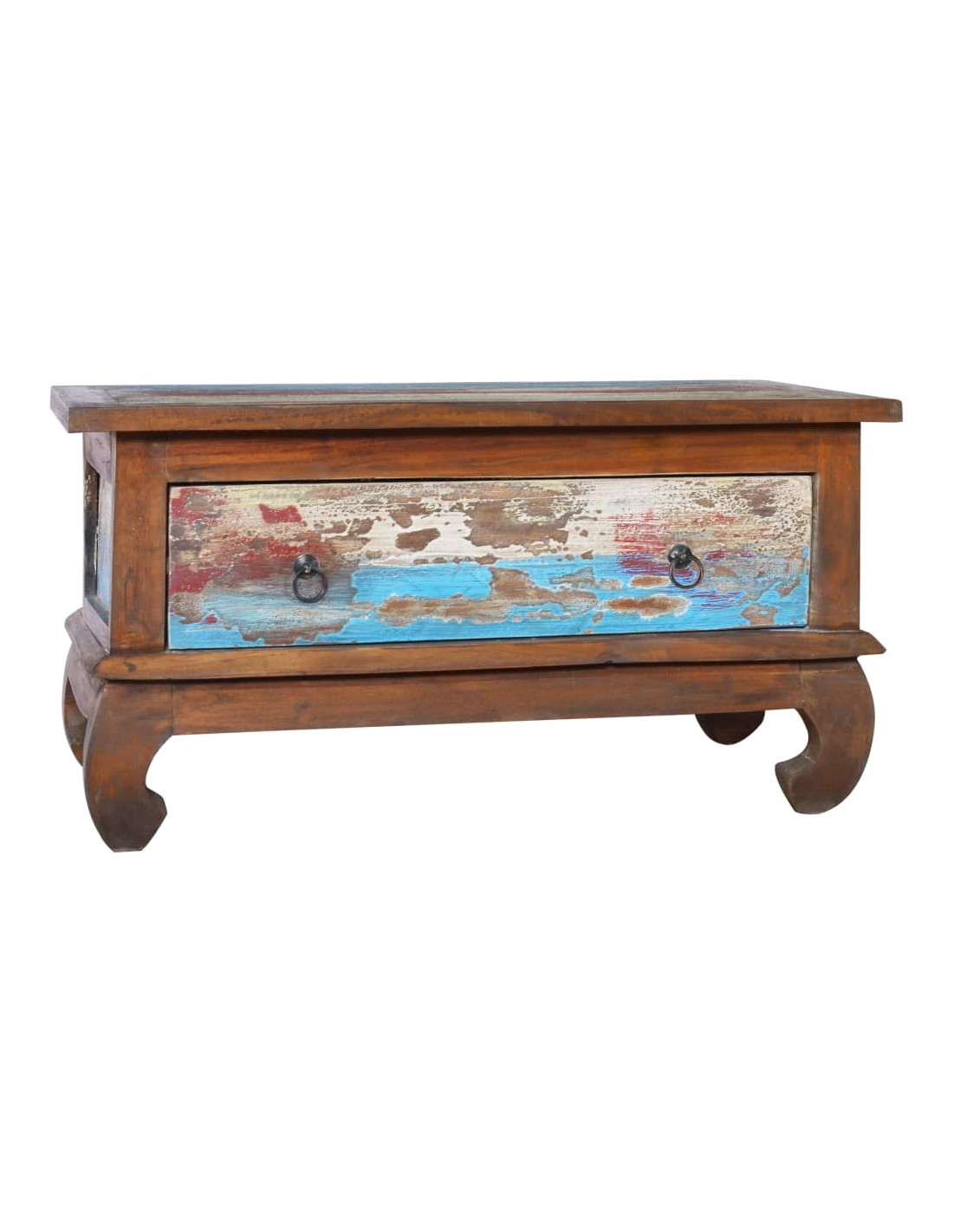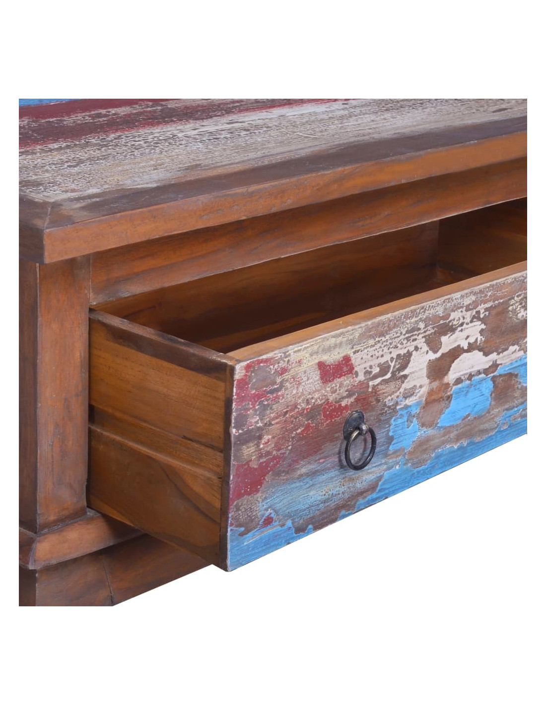 Realizzato in legno massello teak estremamente resistente, questo tavolino è stato rifinito e lucidato con olio naturale per dare un aspetto liscio. Il motivo a macchie multicolori e l'esclusivo design delle gambe ad artiglio completano il look vintage. Inoltre, il cassetto attrezzato aiuta a mantenere i vostri oggetti organizzati e a portata di mano.