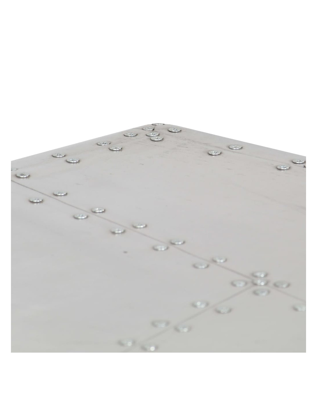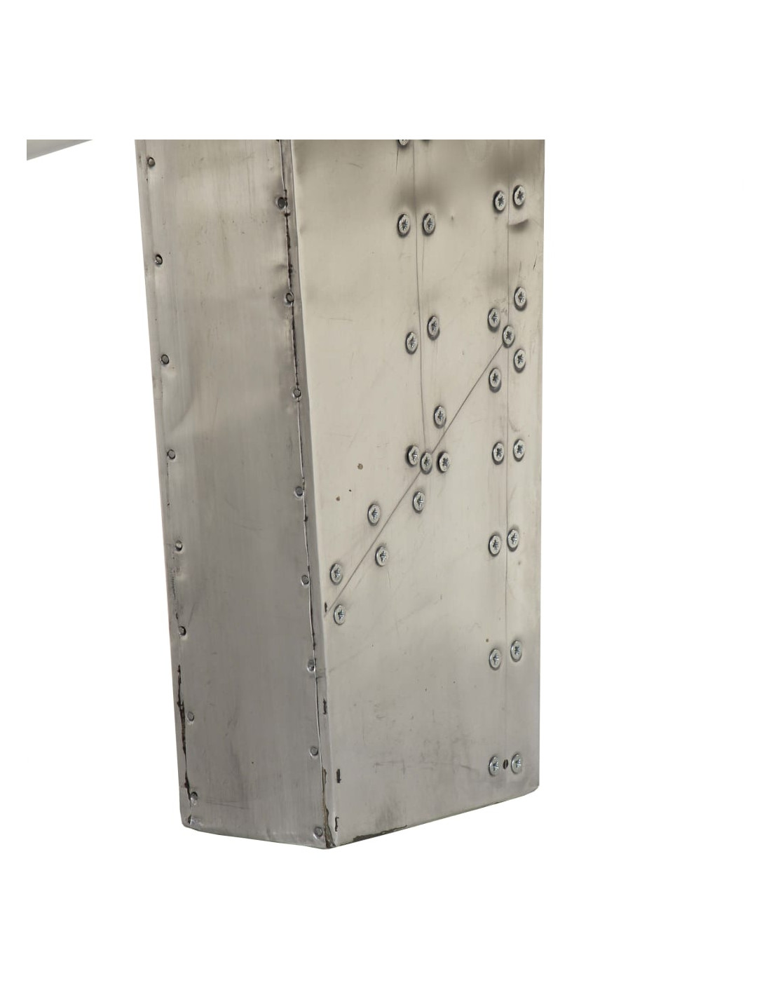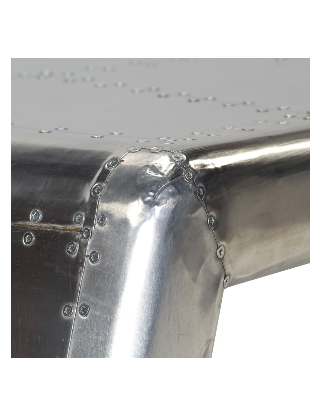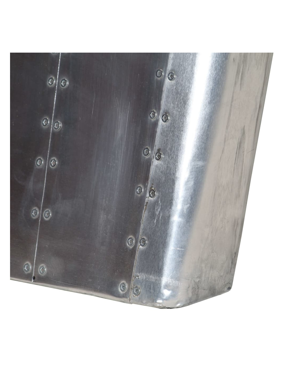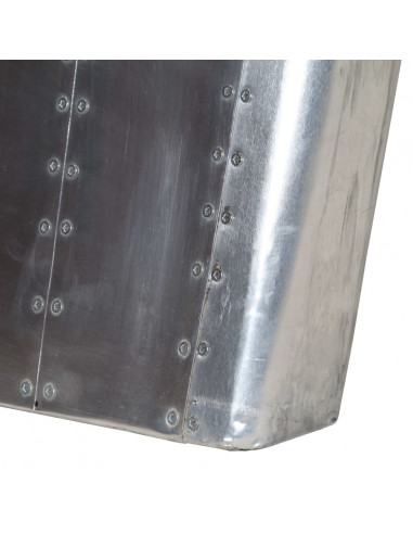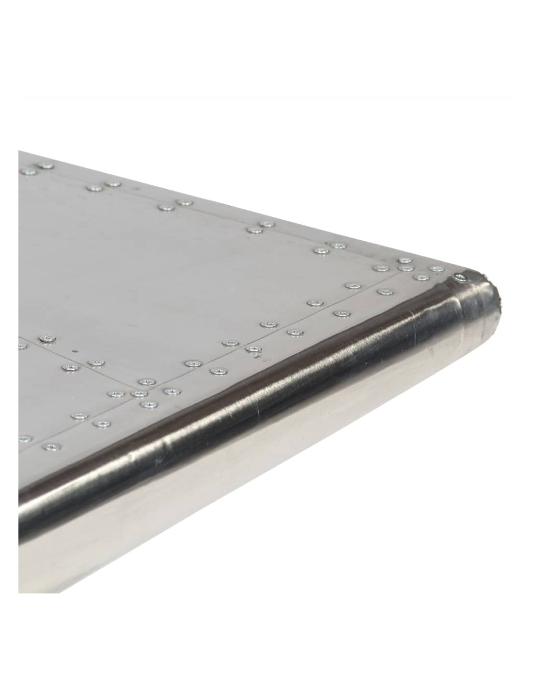 Il tavolino in stile aeronautico è realizzato in alluminio di alta qualità. È durevole, leggero e di facile manutenzione. La struttura in metallo e i rivetti fantasia conferiscono al tavolo da aviatore un aspetto industriale. Il suo solido piano del tavolo fornisce una superficie stabile e sicura su cui è possibile posizionare bevande, cesti di frutta o oggetti decorativi. L'articolo è già assemblato; non è richiesto alcun assemblaggio.
