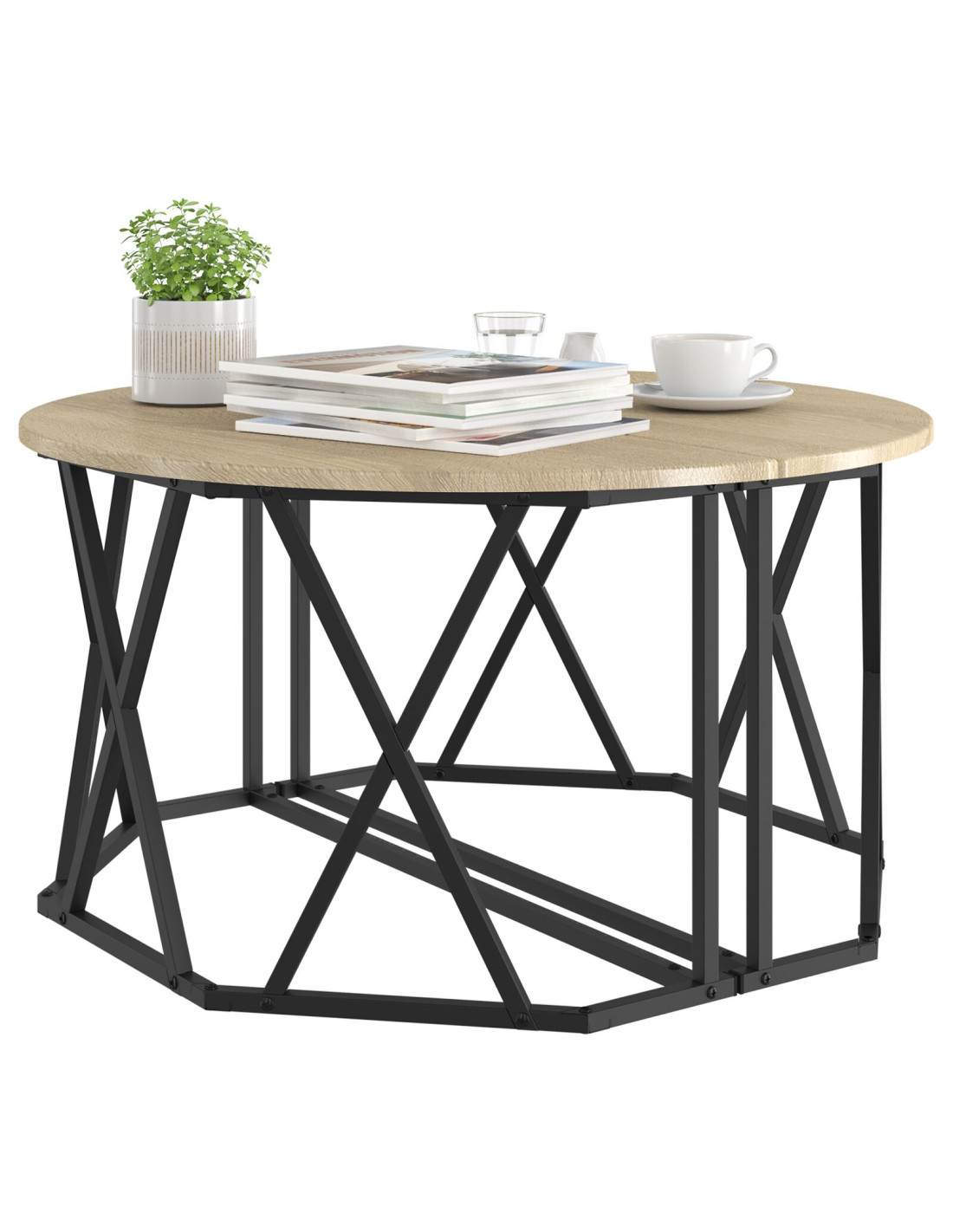 Questo tavolino rotondo moderno è tutto sulla combinazione di stile e funzionalità. È un bel punto centrale per il tuo soggiorno. Con le linee eleganti e la finitura opaca, si abbina perfettamente a vari stili d'interni, aggiungendo un tocco chic al tuo spazio.