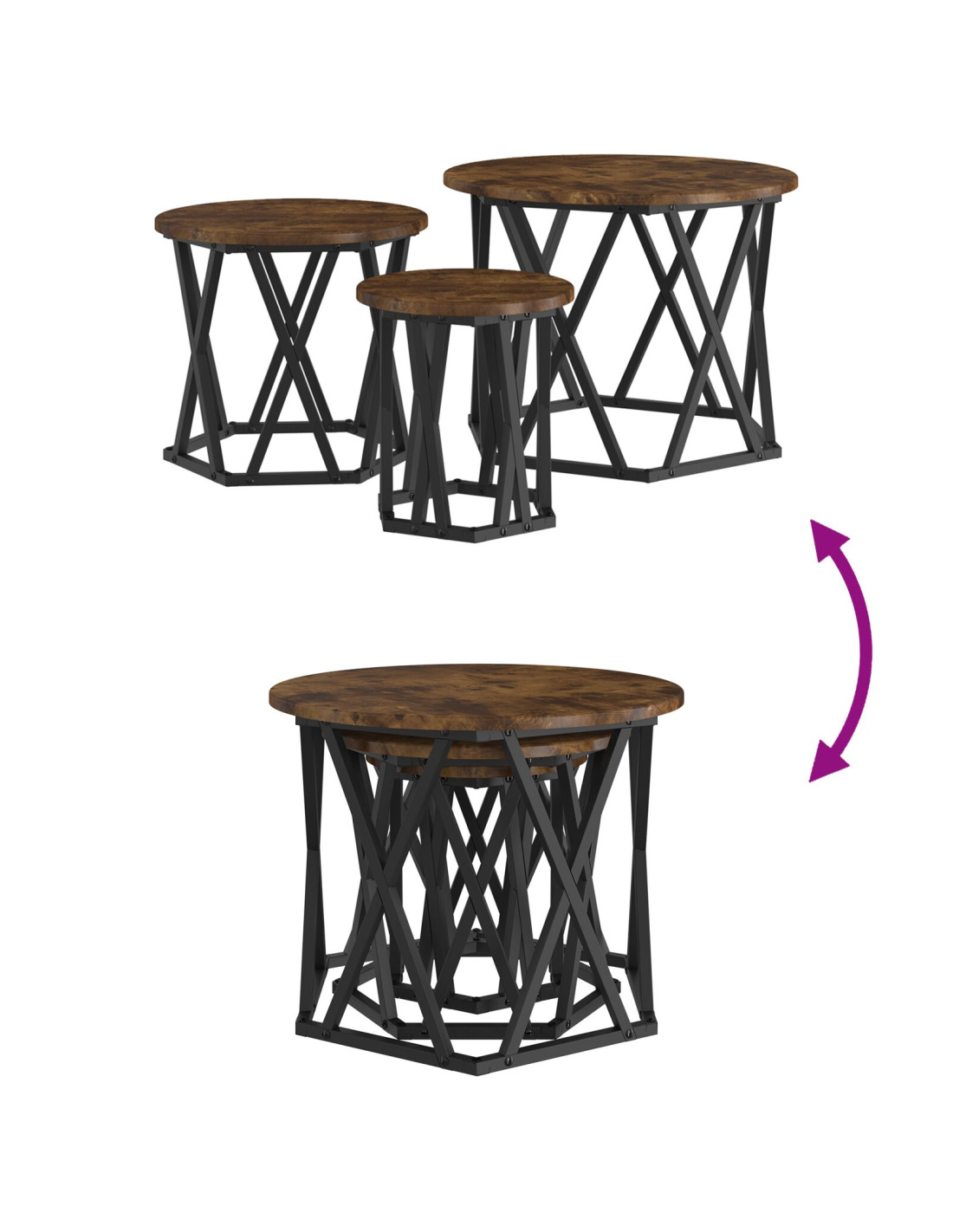 - Componenti inclusi: Il set comprende tre tavolini, dandoti tante opzioni per organizzare il tuo spazio. Ognuno ha una cornice di acciaio nero per supporto affidabile, sia che li usi da soli che insieme.