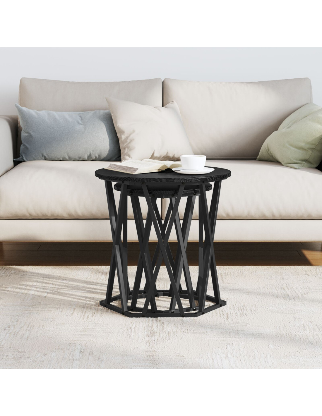 Dai un'occhiata a questo moderno tavolino da caffè rotondo – è davvero un colpo d'occhio per il tuo soggiorno! Con le sue linee pulite e il design intelligente, porta un tocco di eleganza in qualunque stanza. La finitura opaca e il telaio nero elegante lo rendono unico. Offre anche tanto spazio per le bevande e gli oggetti, è un must per tenere tutto in ordine e alla moda!