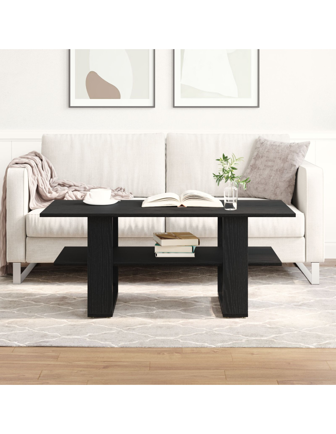 Questo tavolino da caffè contemporaneo abbraccia il design moderno con linee eleganti e grande funzionalità. Offre un modo chic per tenere a posto oggetti artistici o di uso quotidiano nel soggiorno. Realizzato in legno ingegnerizzato, assicura una superficie sicura, mentre le mensole ti danno spazio in più per riviste, libri o decorazioni, armonizzando stile e praticità. Che sia al centro di un ambiente informale o in un contesto più elegante, questo tavolo colpisce con la sua semplicità e il suo scopo, per chi ama il design moderno.